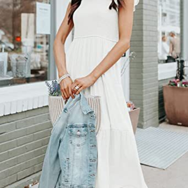 Smocked Flutter-Sleeve Tiered Midi Dress