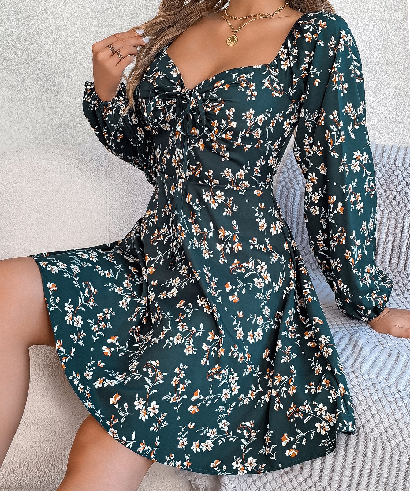 Floral Square Neck Smocked Waist Ruffle A-Line Dress