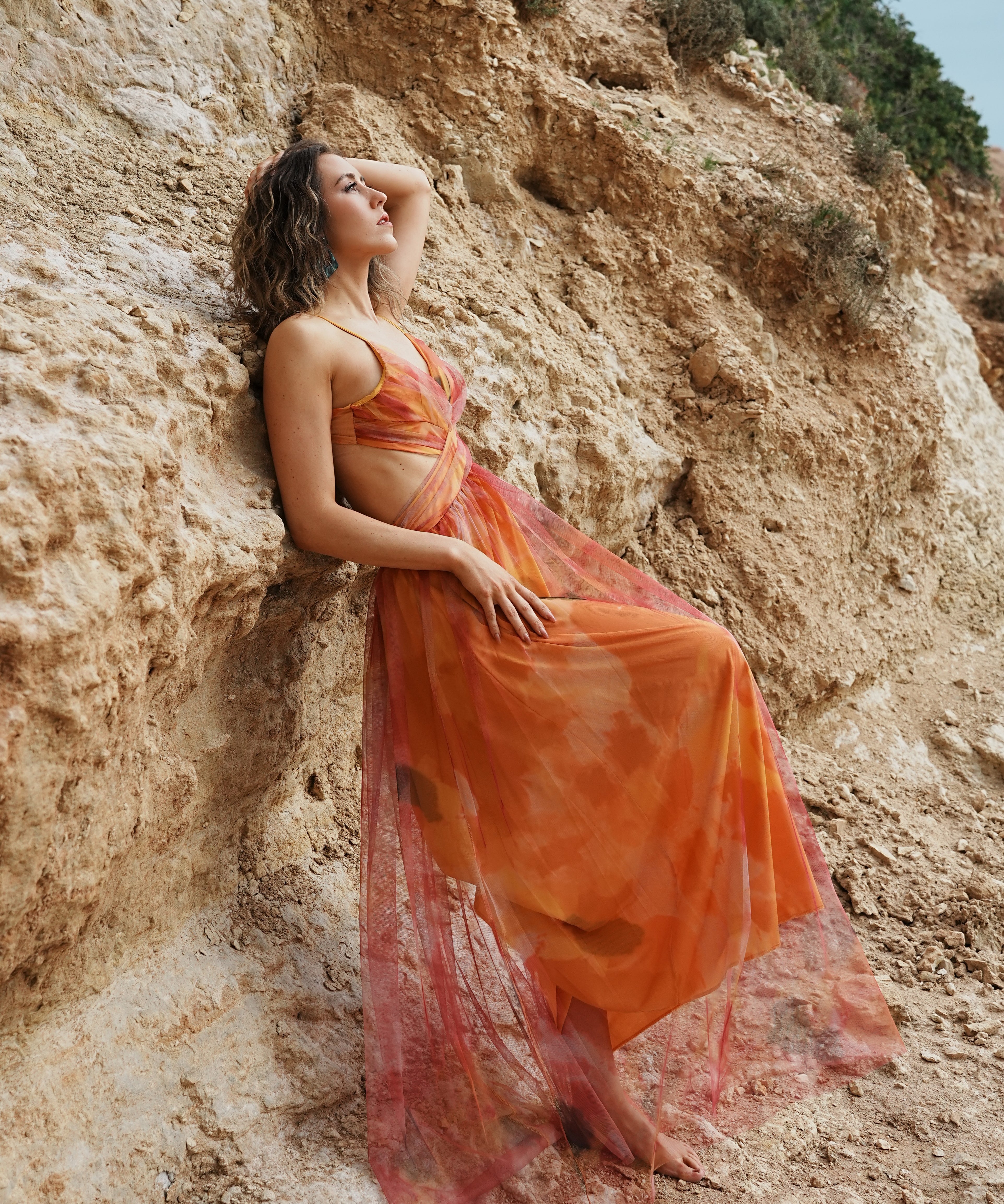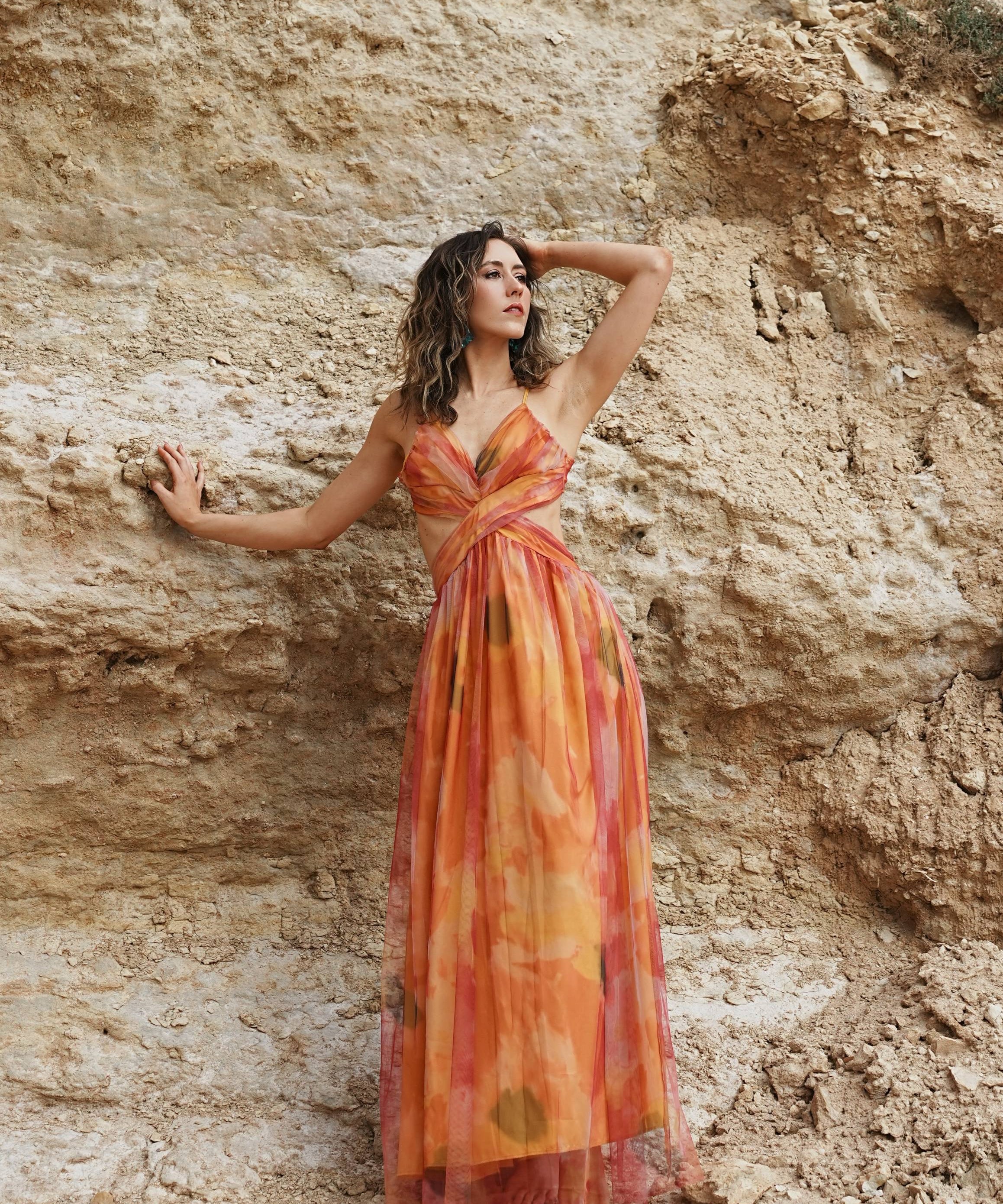 Floral V-Neck Batwing Sleeve Flowy Midi Dress