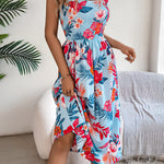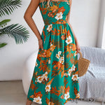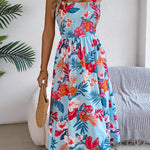 Embrace summer vibes with this floral midi dress. It features tie straps, a smocked waist for a flattering fit, and vibrant floral prints. Perfect for beach trips, resort getaways, or sunny picnics, it brings effortless romance to your warm-weather wardrobe.