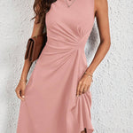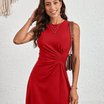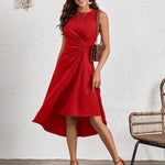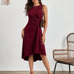 Elevate your summer style with this sleeveless ruched A-line midi dress. It features a flattering ruched detail at the waist, a flowy A-line skirt, and solid colors for versatile wear. Ideal for office days, dinners, or weekend strolls, it merges comfort and chic elegance effortlessly.