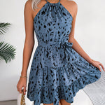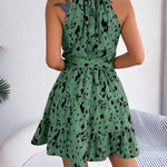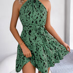 Spring Summer Leopard Print Halter Ruffle Mini Dress