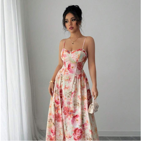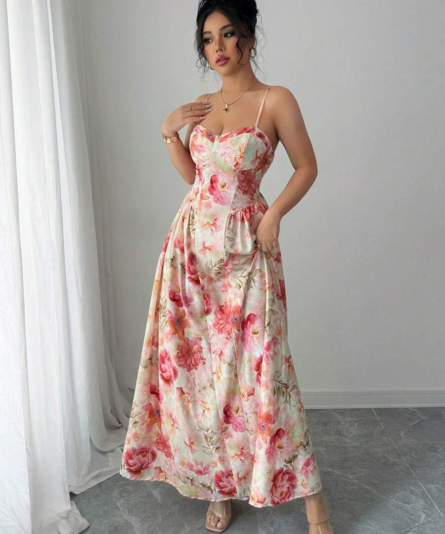 Floral Square Neck Smocked Waist Ruffle A-Line Dress