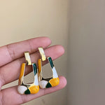 Color - Block Geometric Drop Earrings (Silver Needles, Multi - Colors)