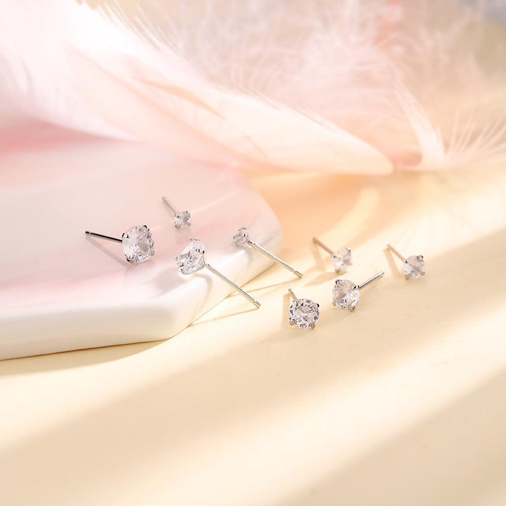 These Four - Prong Zircon Stud Earrings are available in multiple sizes (3mm, 4mm, 5mm, 6mm) to match your style. Featuring sparkling zircon stones held by sleek four - prong settings, they bring a glamorous touch. Ideal for pairing with a blazer for a polished office look, a silk camisole for a romantic dinner, or a denim jacket for casual charm, they’re versatile for work, parties, or daily outings.