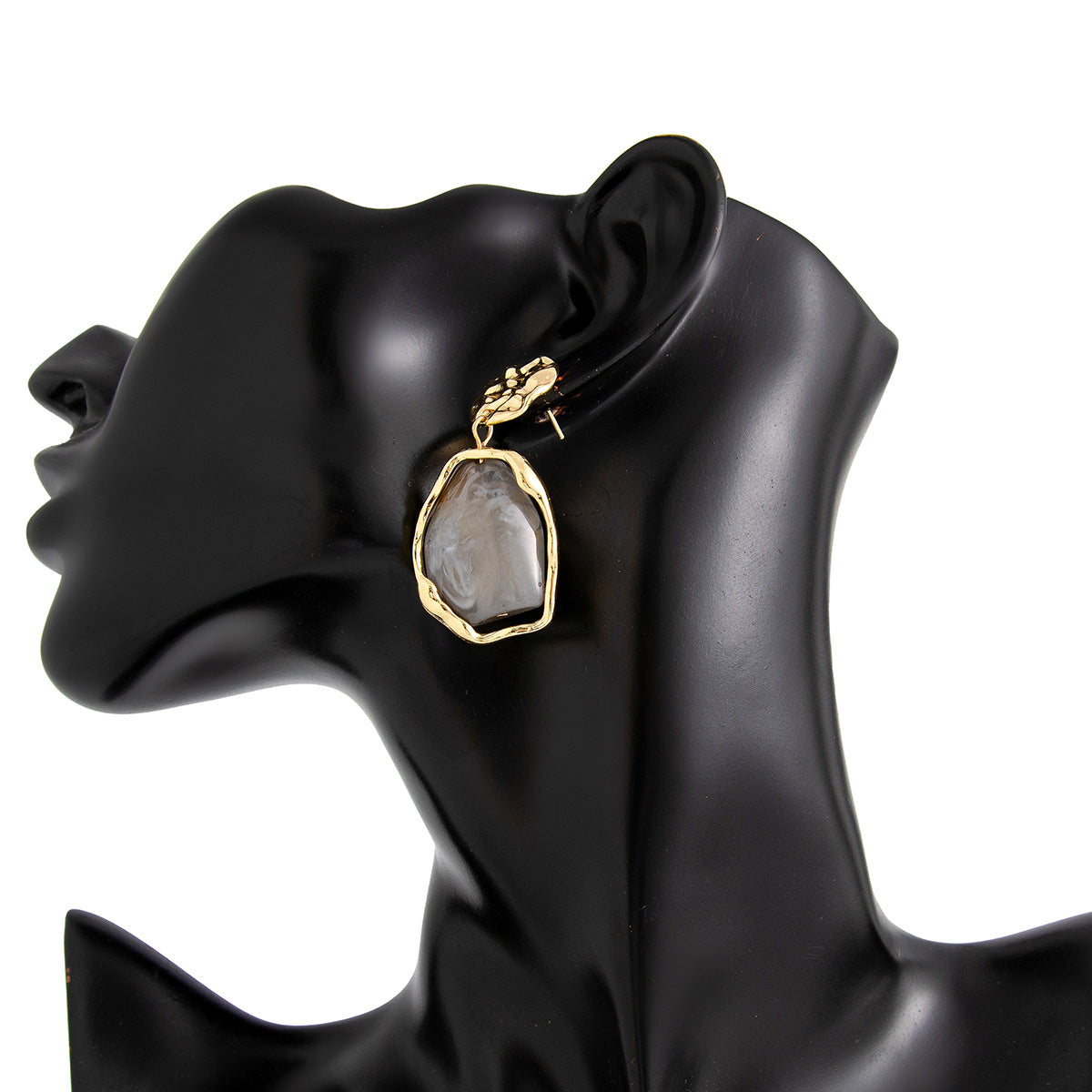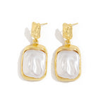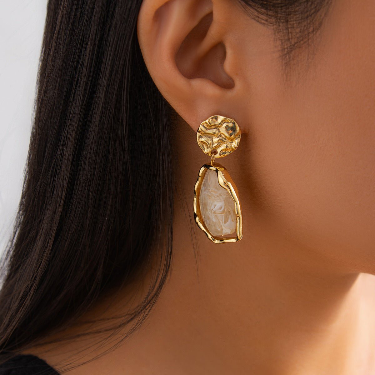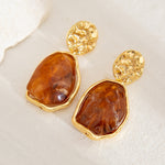 These French - Style Metallic Pleated Stone Drop Earrings, offered in gray, coffee, and beige, boast a stylish metallic look with pleated details and stone - like elements. They complement a retro midi dress at a vintage market, a leather jacket for a concert night, or a knitted sweater during a brunch gathering, easily bringing a luxurious touch to every outfit.