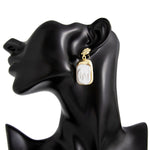 French - Style Metallic Pleated Stone Drop Earrings