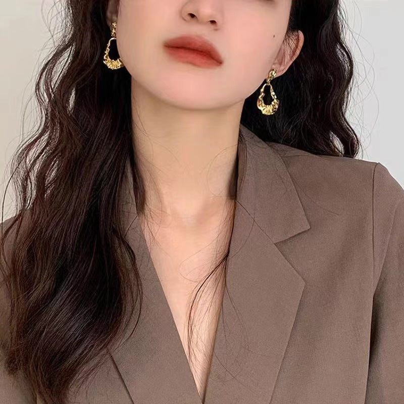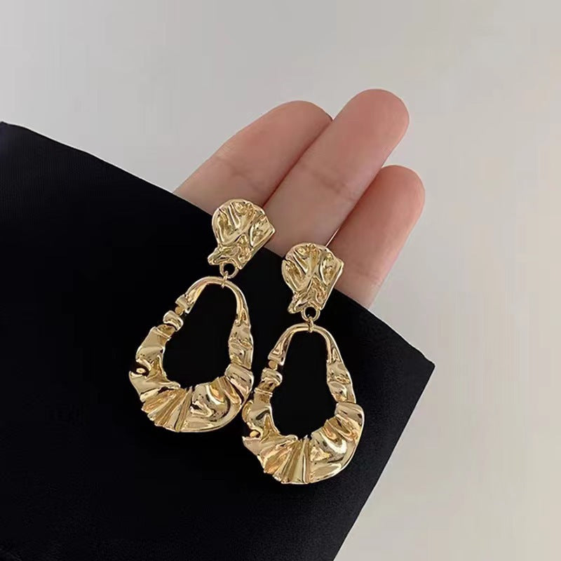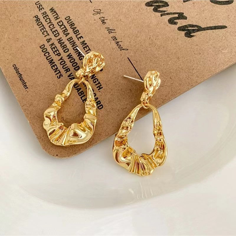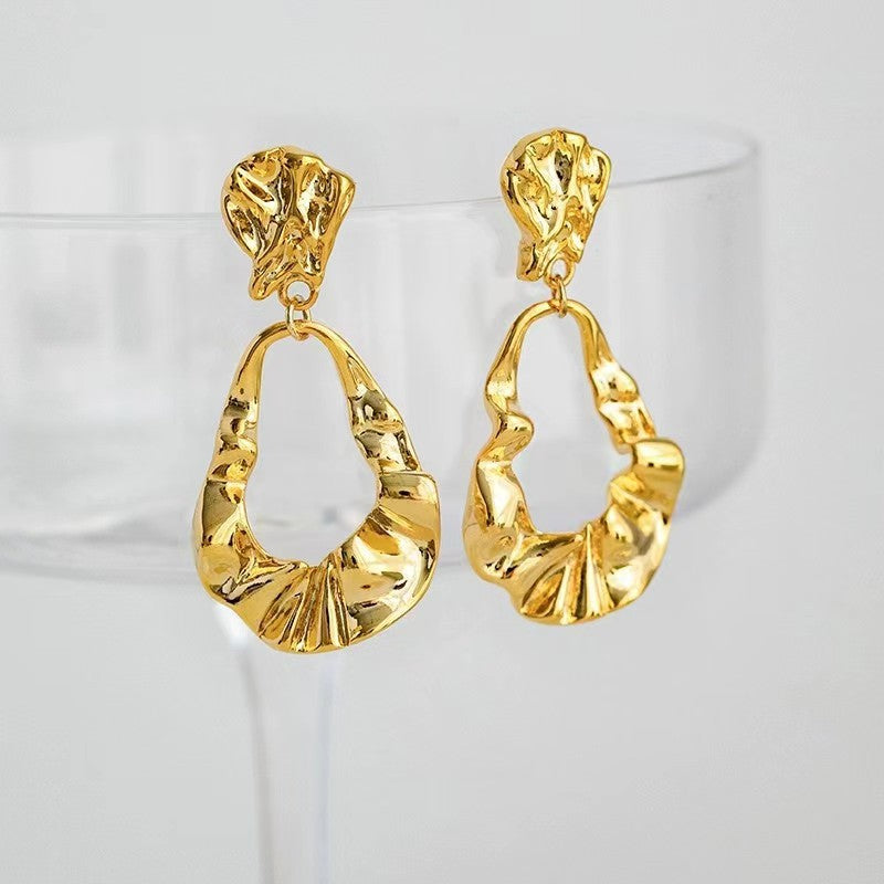 Gold Pleated Irregular Drop Earrings