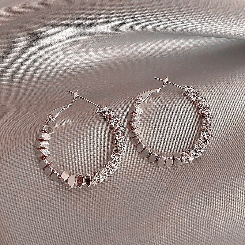 Rhinestone Hoop Earrings (Gold & Silver, Silver Needles)