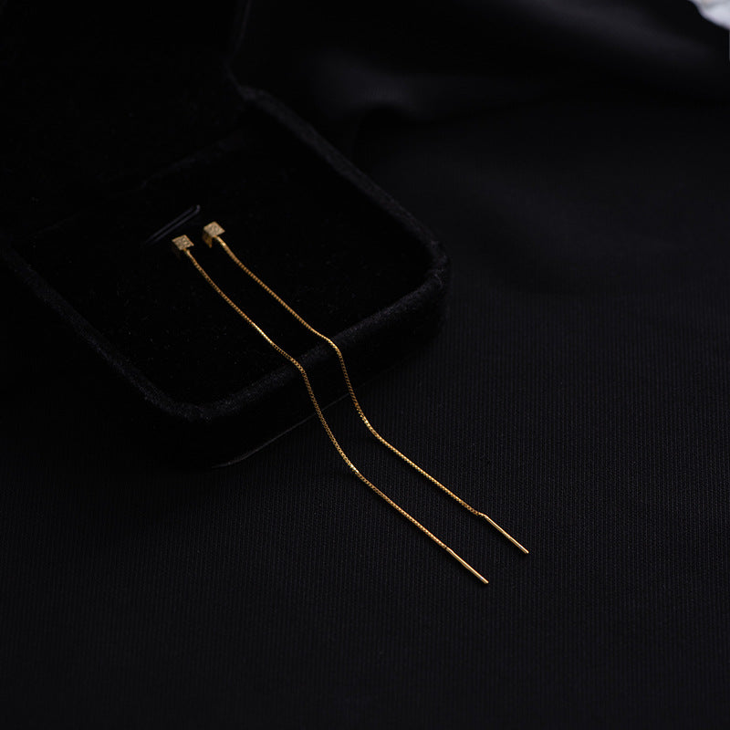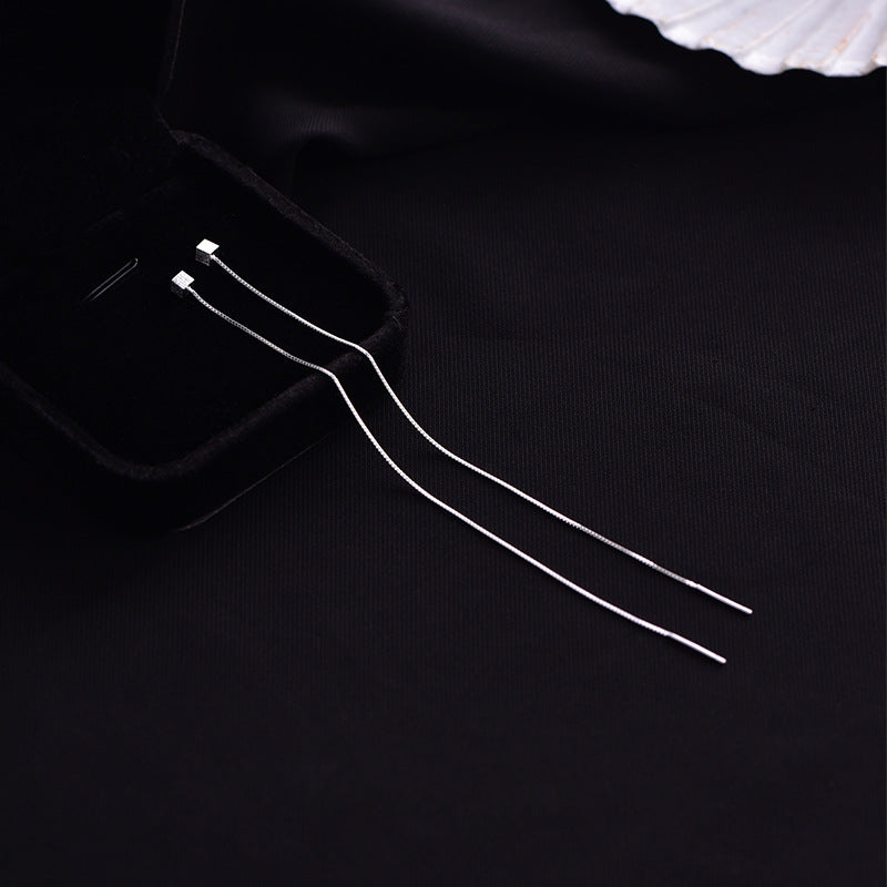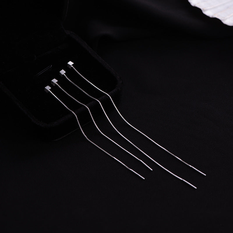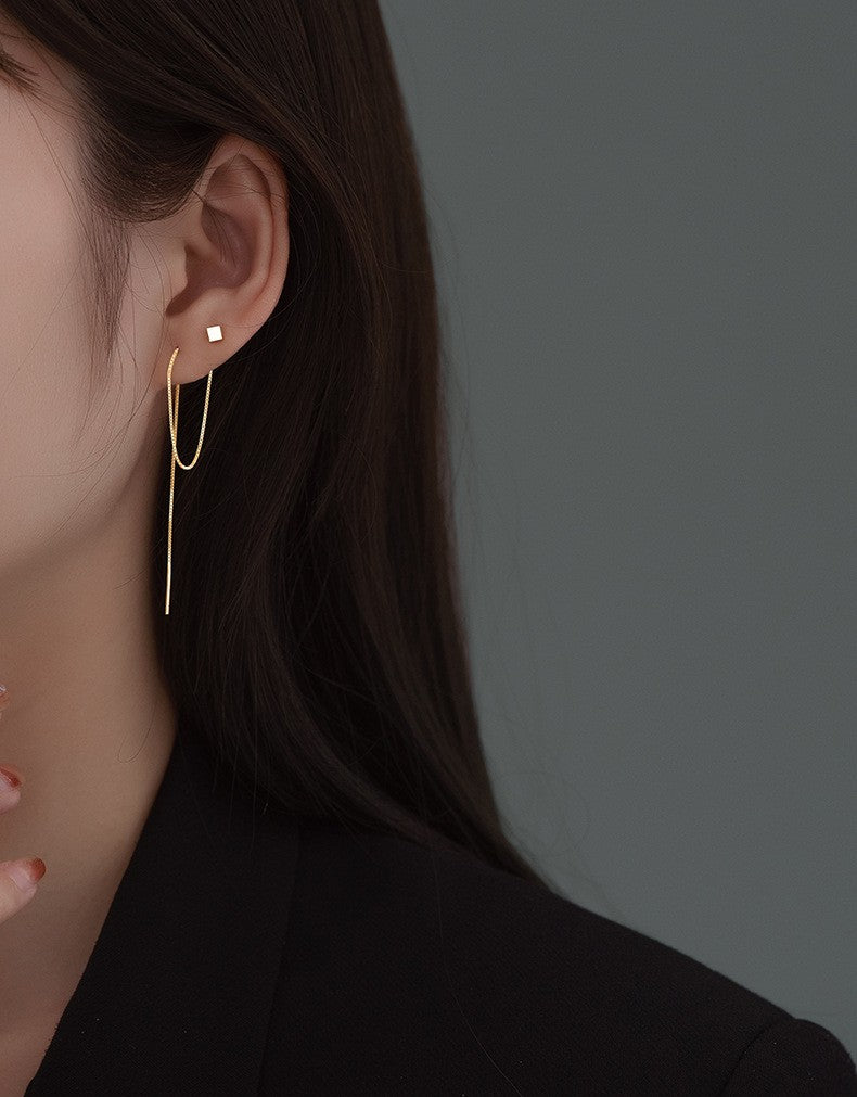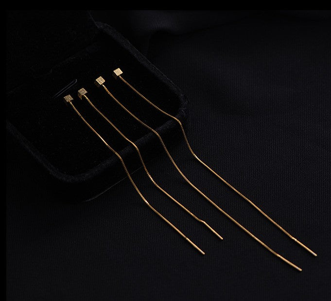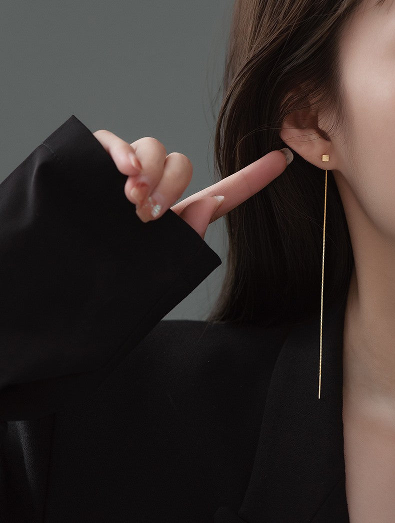These S925 silver ear threads boast a sleek square design paired with long tassels. Offered in gold/silver hues and long/short styles, they give off a niche, high - end feel. Ideal for office commutes with a tailored blazer or weekend shopping trips with a casual dress, they effortlessly add subtle sophistication to any outfit.