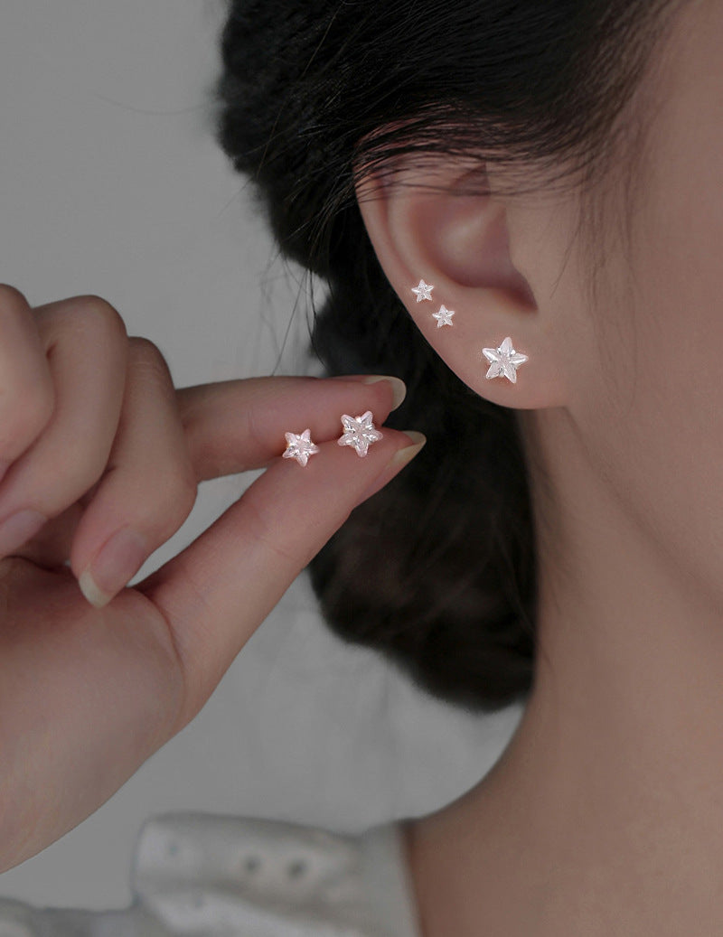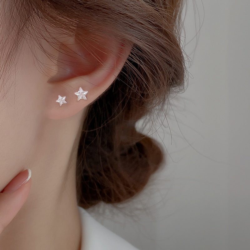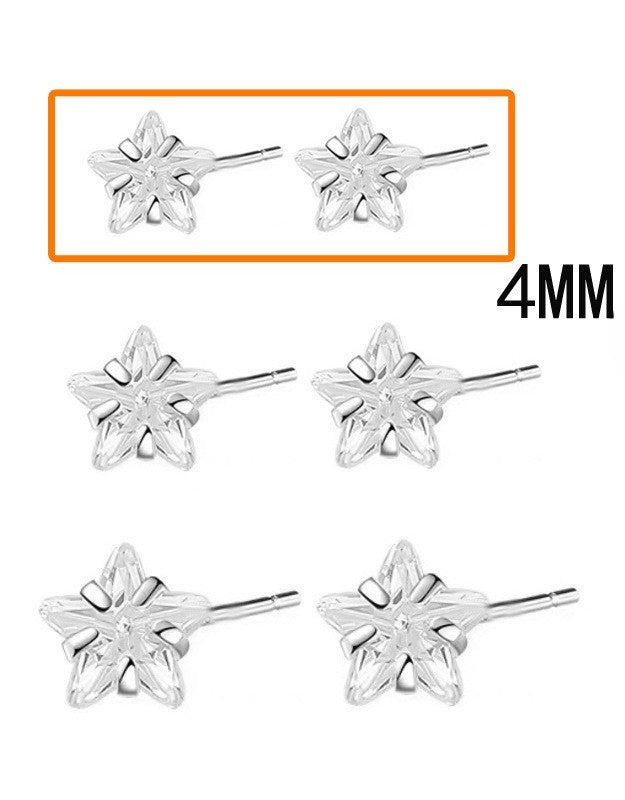 These Shiny Zircon Star Stud Earrings, offered in 4mm, 5mm, or 6mm sizes, showcase sparkling five - pointed star shapes with zircon stones. They’re gentle on ears, suitable for ear care and even wearable while sleeping. Perfect for pairing with a knit cardigan during a cozy cafe hangout, a slip dress at a music festival, or a button - down shirt for work. Their delicate charm makes them ideal for stacking or solo wear.
