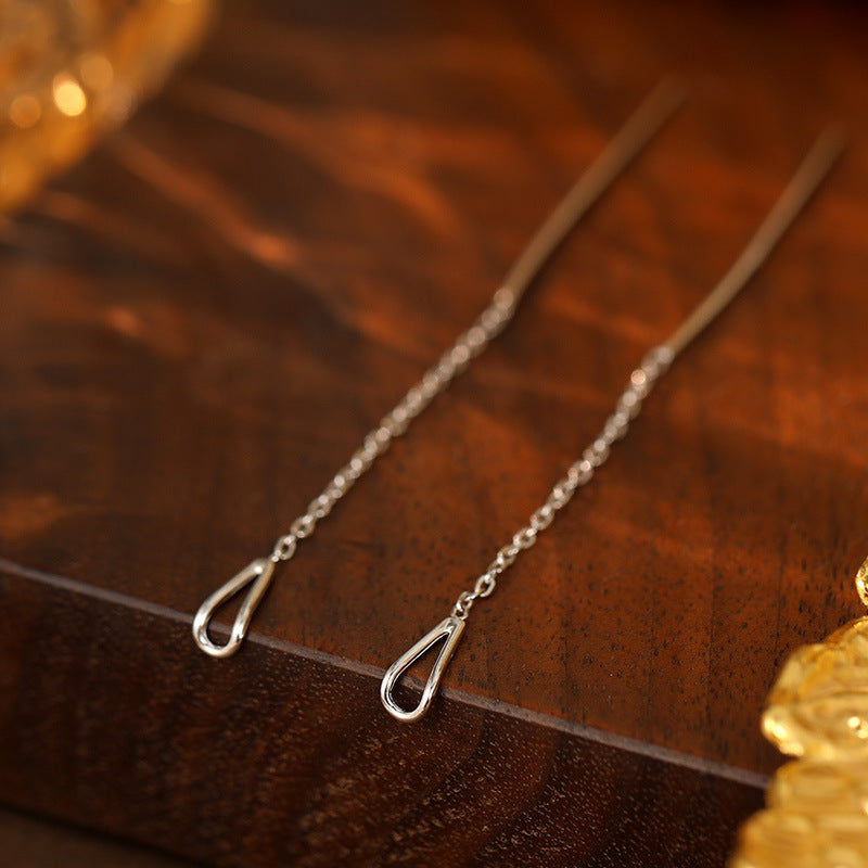 999 Silver Hollow Water Drop Ear Threads