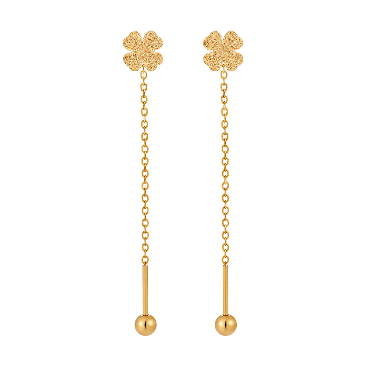 Love Heart & Four - Leaf Clover Titanium Steel Tassel Earrings