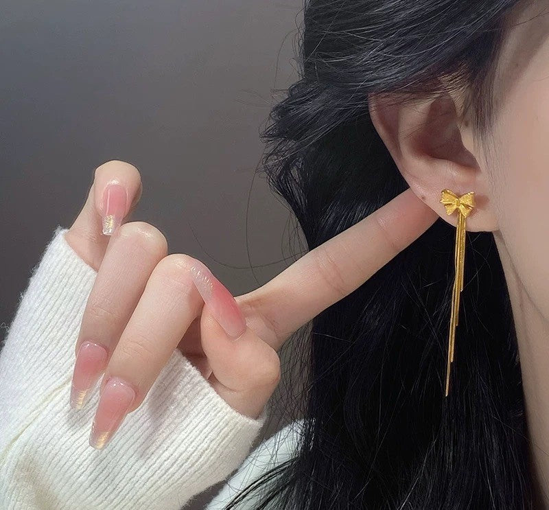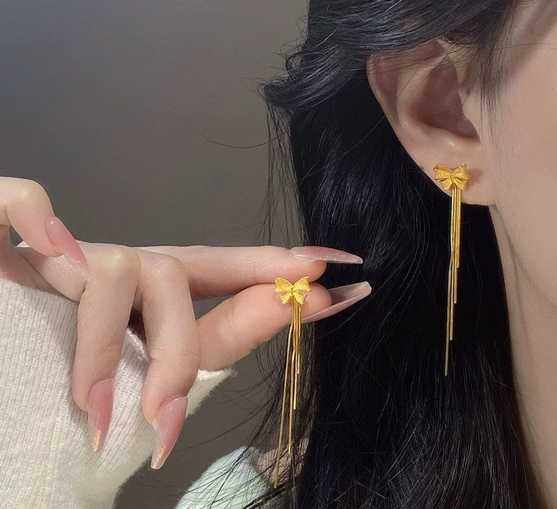 Gold Bowknot Tassel Earrings