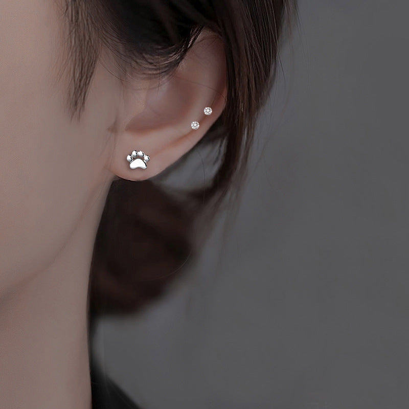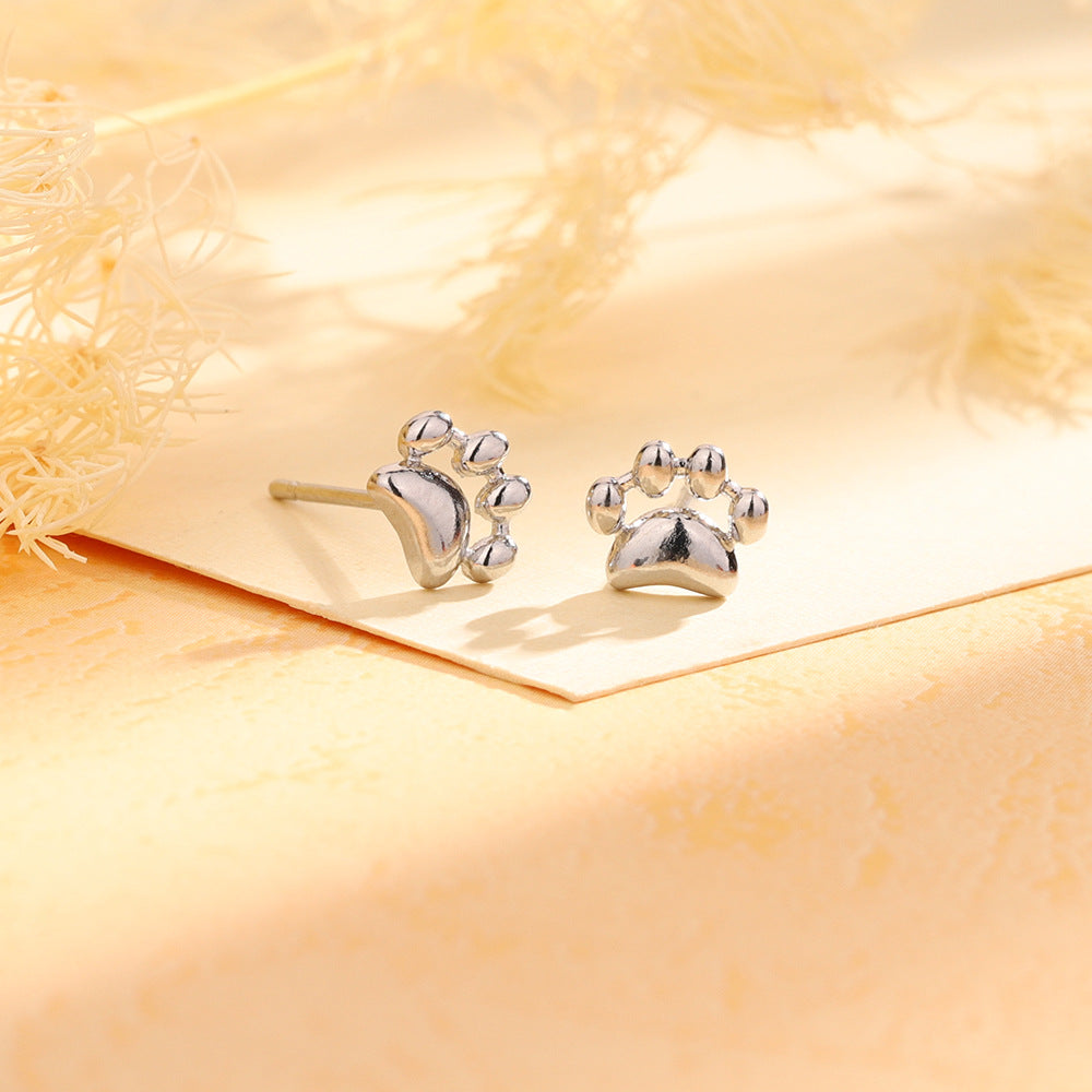 Silver Cat Paw Stud Earrings