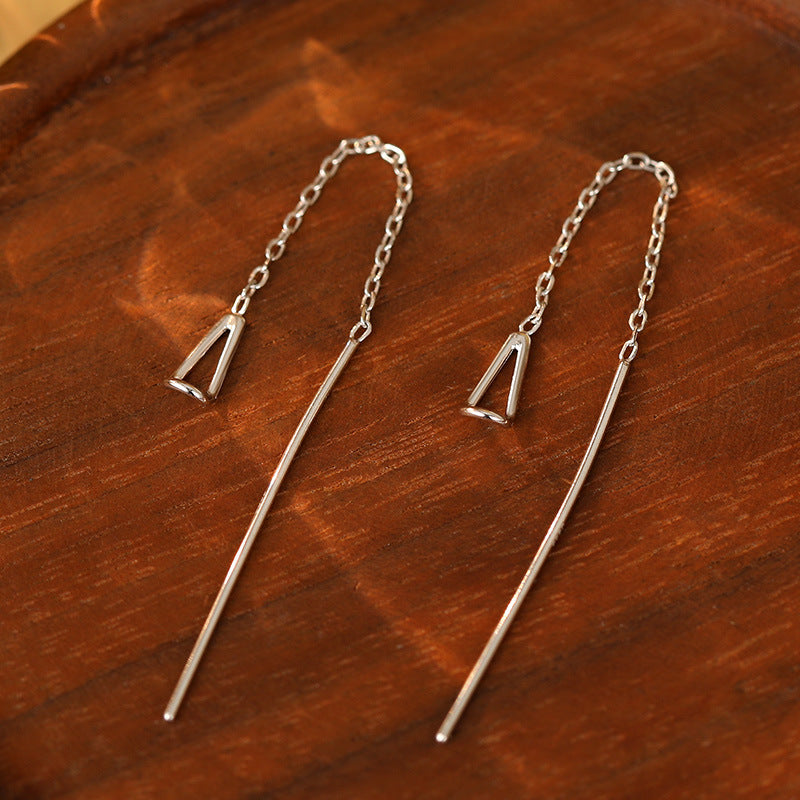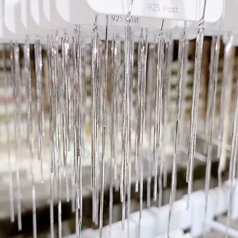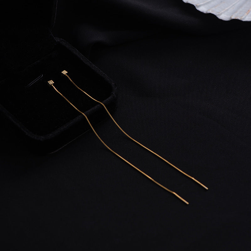S925 silver brushed cube long tassel earrings