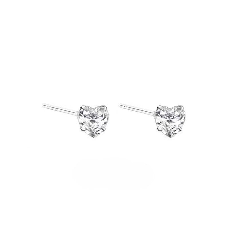 Shiny Zircon Heart Stud Earrings