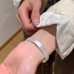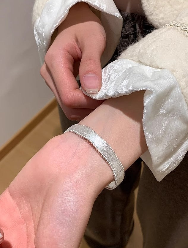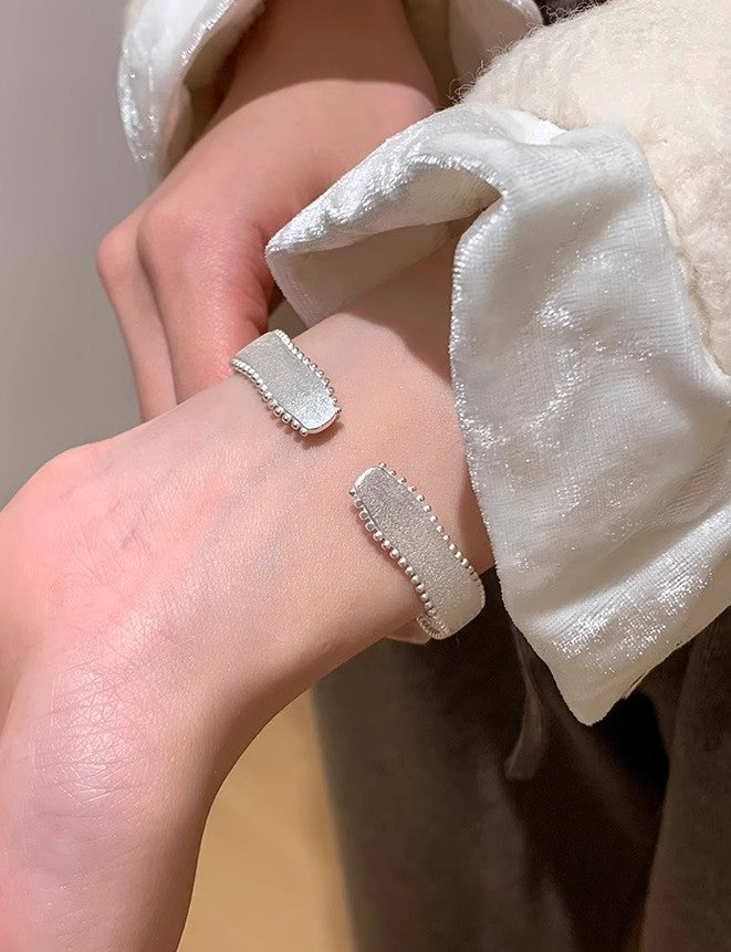 This 925 Silver Brushed Matte Wide Cuff Bracelet boasts a sleek wide design with a textured brushed - matte finish, radiating understated luxury. Crafted from genuine 925 silver, it pairs beautifully with a lace blouse for a brunch date, a chunky knit cardigan during cozy weekend outings, or a velvet midi dress at an evening gathering. Effortlessly add a touch of luxurious sophistication to any look with this niche - designed open cuff.