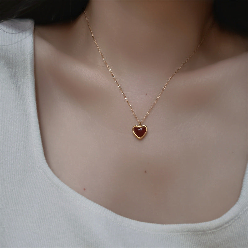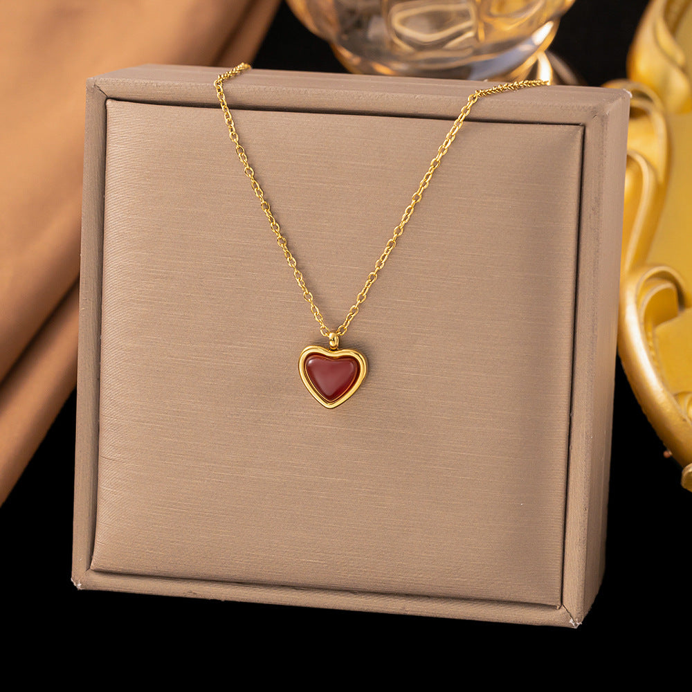 Add a touch of romantic elegance to your look with this Stainless Steel Red Agate Heart Necklace. Featuring a vibrant red agate heart pendant in a gold finish, it’s lightweight, durable, and ideal for everyday wear. Whether you’re pairing it with a floral dress for a brunch date, a casual tee for weekend strolls, or a sleek gown for a special event, this necklace effortlessly blends warmth and sophistication, making it a chic choice for jewelry lovers.