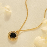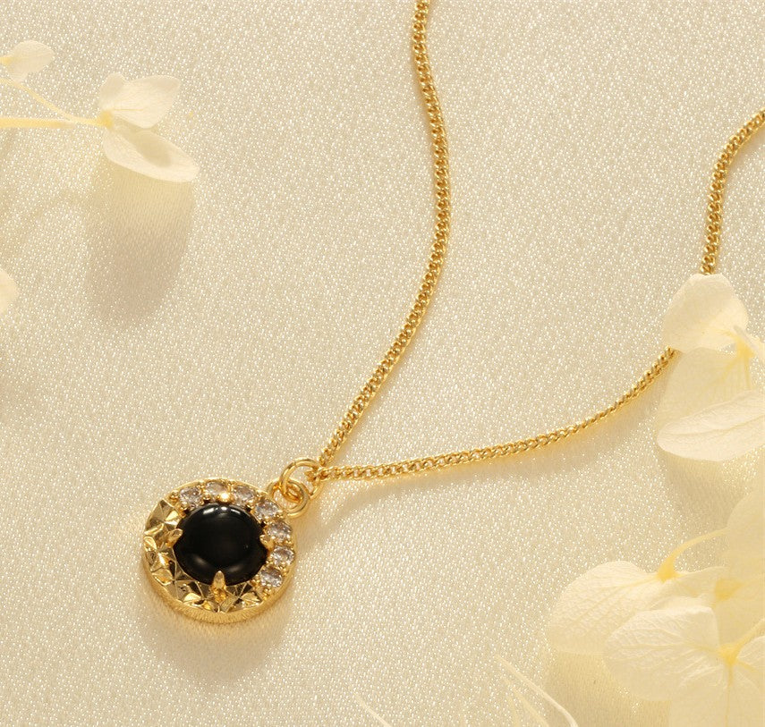 Add a touch of timeless elegance to your look with this Titanium Steel Black Round Gem & Zircon Necklace. Featuring a black round gem surrounded by sparkling zircons in a gold finish, it’s lightweight and durable for everyday wear. Whether you’re pairing it with a tailored suit for the office, a little black dress for a dinner date, or a casual top for weekend outings, this necklace effortlessly blends sophistication and charm, making it a chic choice for jewelry lovers.