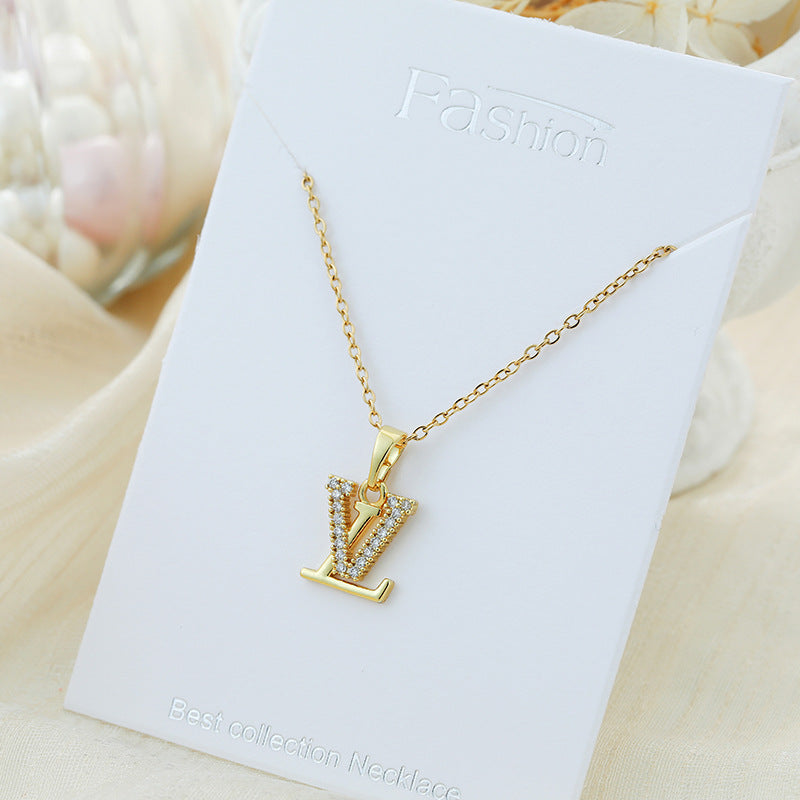 Titanium Steel Diamond-Accented Letter L Clavicle Necklace