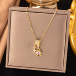 Add a touch of romantic elegance to your look with this Titanium Steel Star & Pink Rectangular Gem Necklace. Featuring a pink rectangular gem pendant, star accent, and sparkling zircon details, available in gold and silver finishes, it’s lightweight and durable for everyday wear. Whether you’re pairing it with a floral dress for a date, a casual top for weekend errands, or a little black dress for a party, this necklace effortlessly blends sweetness and sophistication, making it a chic choice for jewelry lovers.