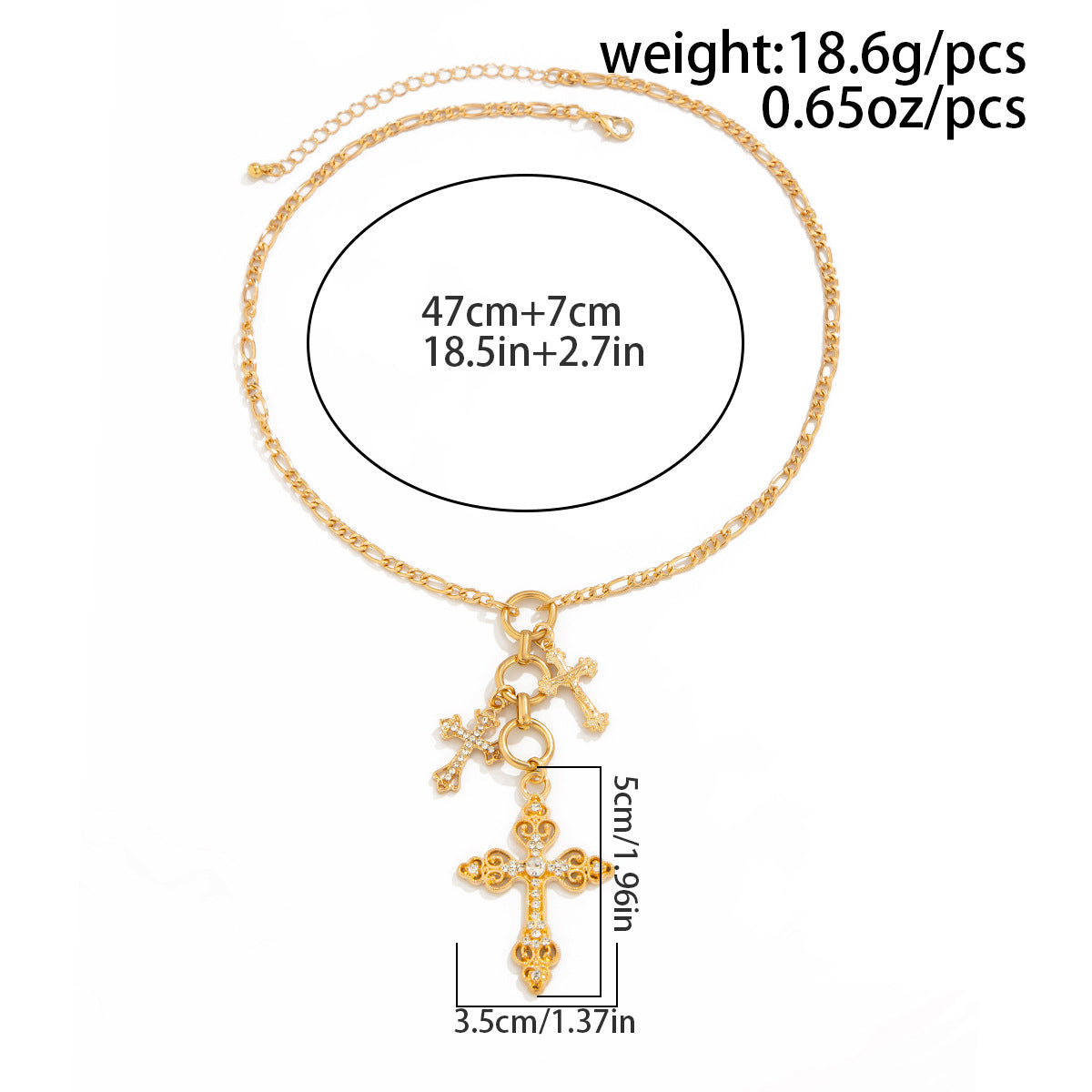 This vintage diamond-accented cross multi-pendant alloy necklace is durable and stylish, boasting an ins-inspired design with layered cross charms that exude retro charm. It shines in diverse scenarios: Pair it with a white retro shirt for an outdoor art market (literary vintage vibe), match a black velvet cami for a retro-themed afternoon tea (elegant nostalgia), or coordinate with a black leather jacket for street-style looks (edgy personality). It’s a versatile accessory that elevates any outfit effortlessly.