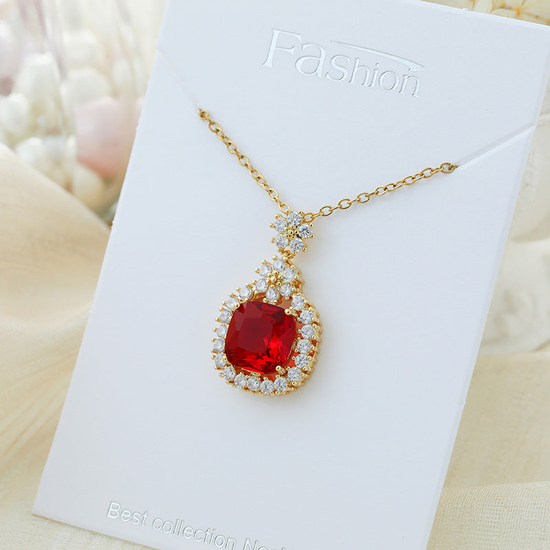Titanium Steel Red Oval Gem & Zircon Necklace