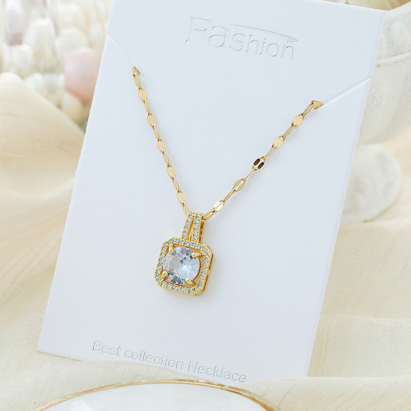 Titanium Steel Square Gemstone-Accented Clavicle Necklace