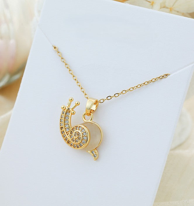 Titanium Steel Cat-Shaped Gemstone-Accented Clavicle Necklace