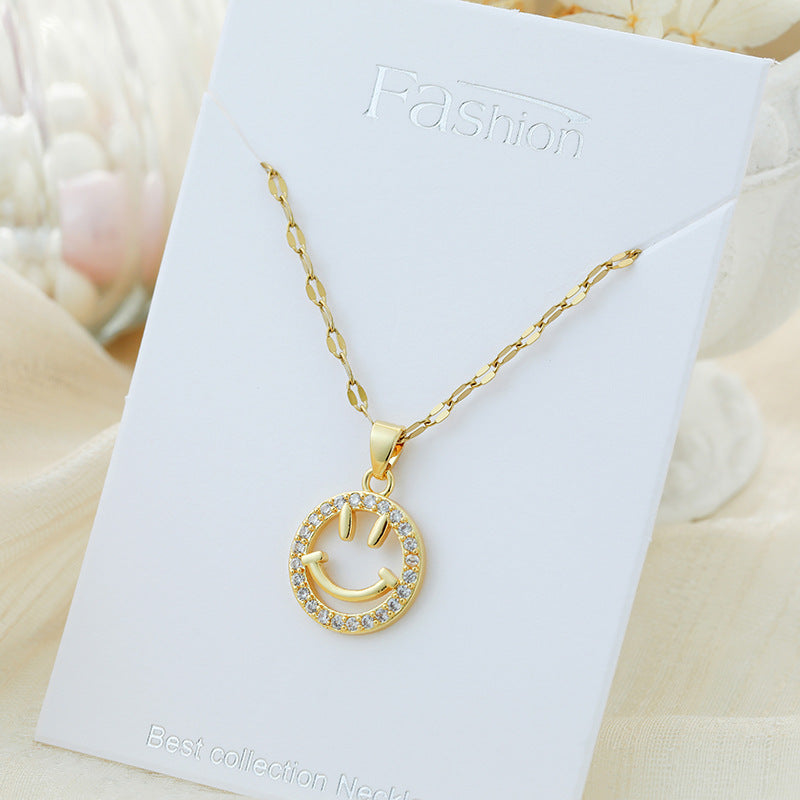 Titanium Steel Diamond-Accented Smiley Face Clavicle Necklace