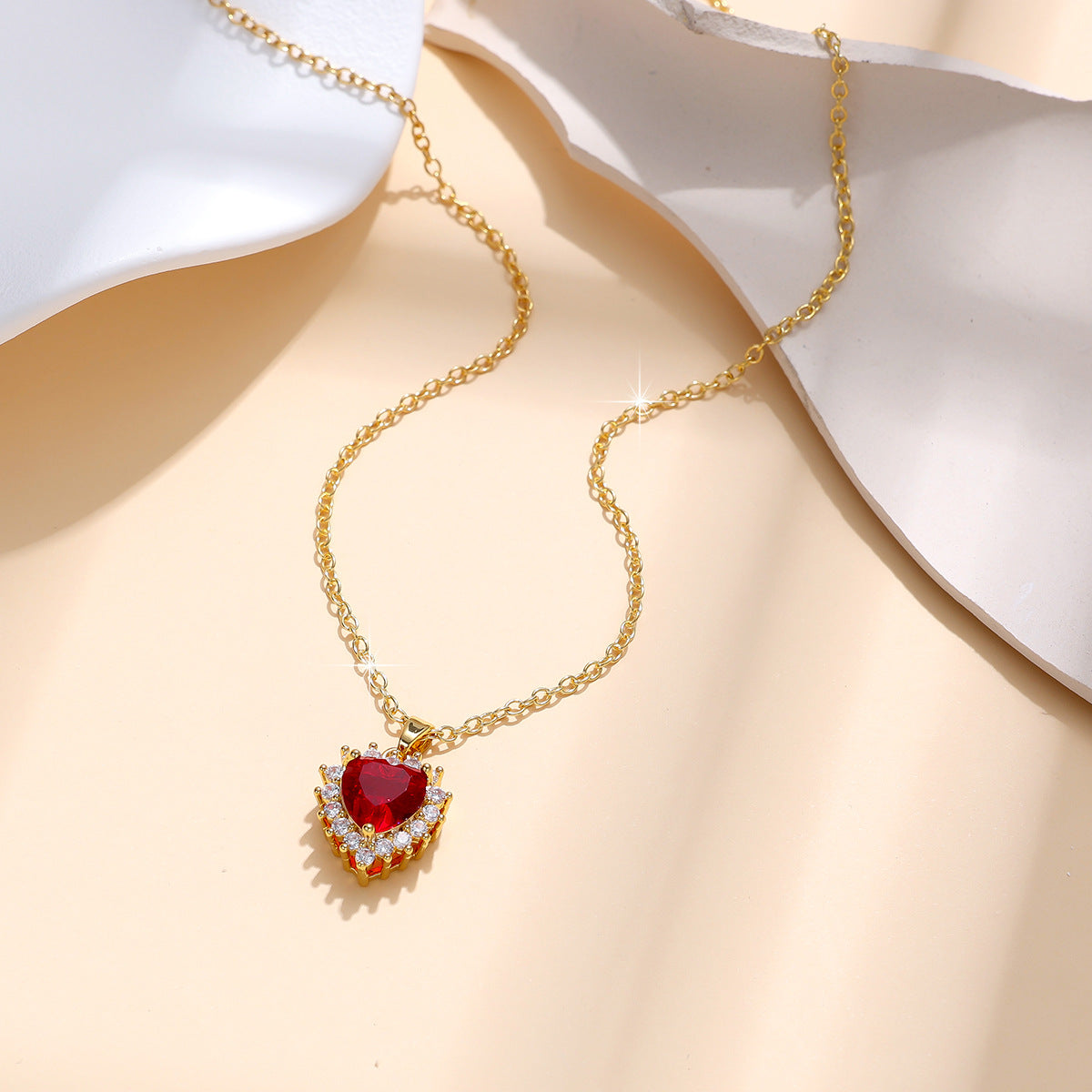 Titanium Steel Red Heart Gem & Zircon Necklace
