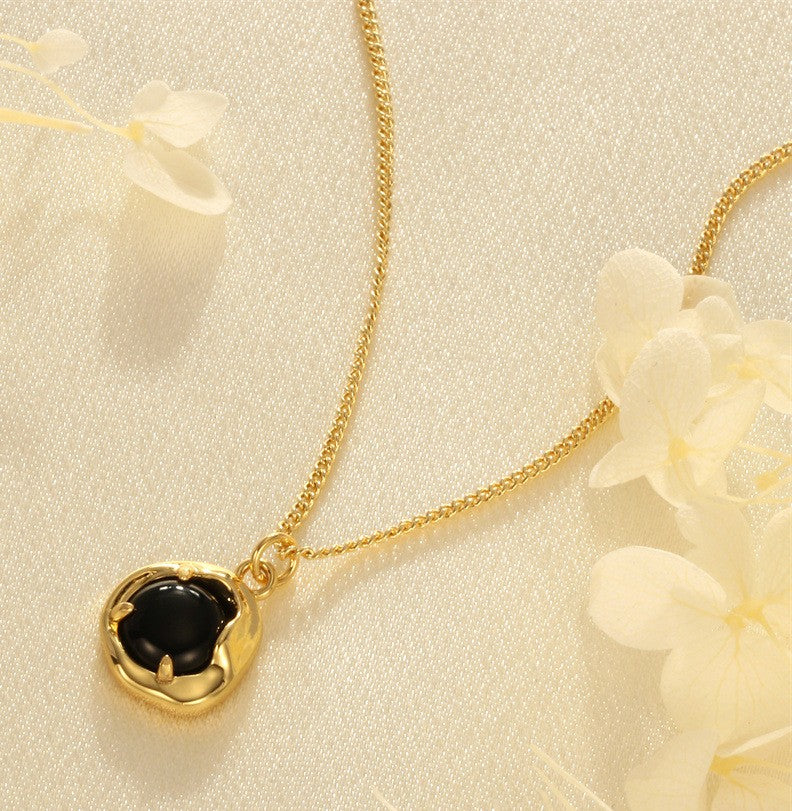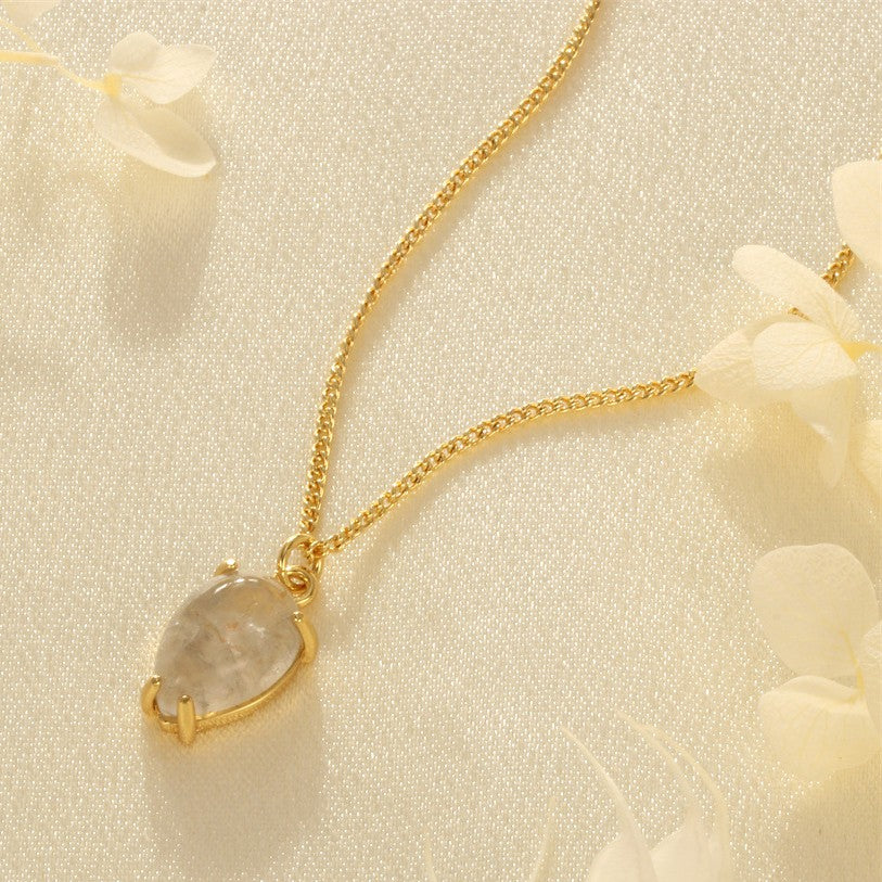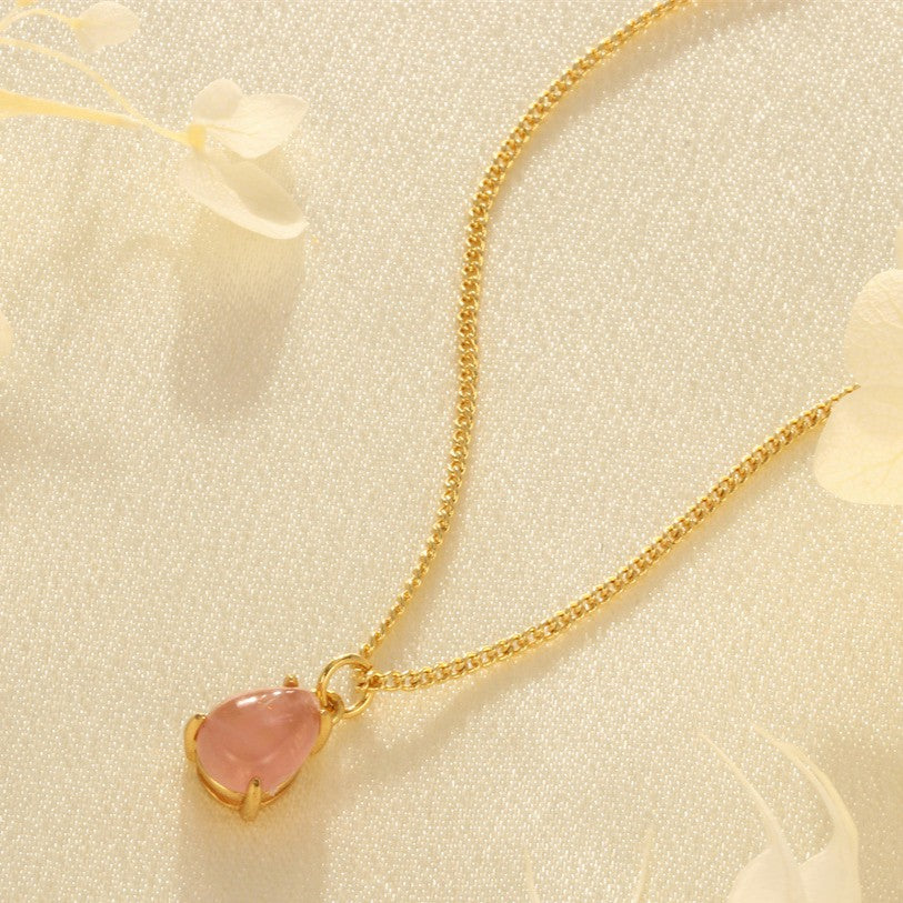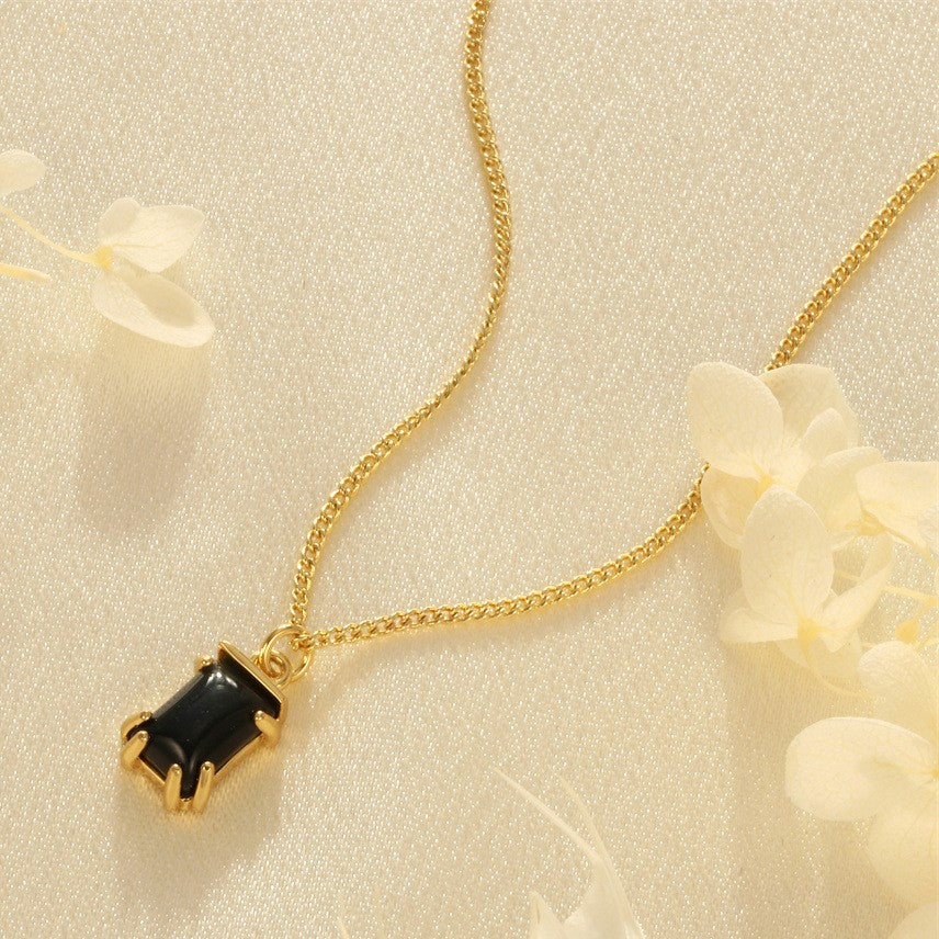 Titanium Steel Teardrop Gem & Zircon Necklace