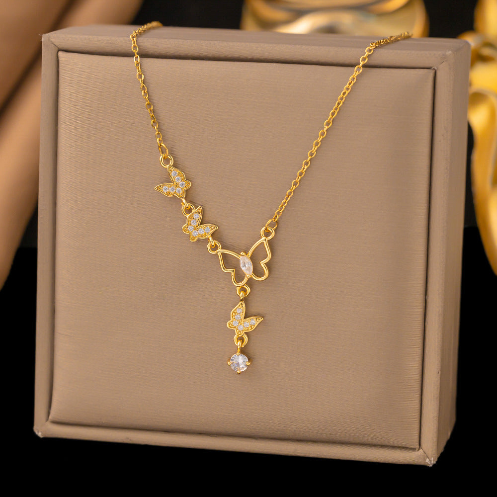 Titanium Steel Butterfly Tassel Pendant Necklace