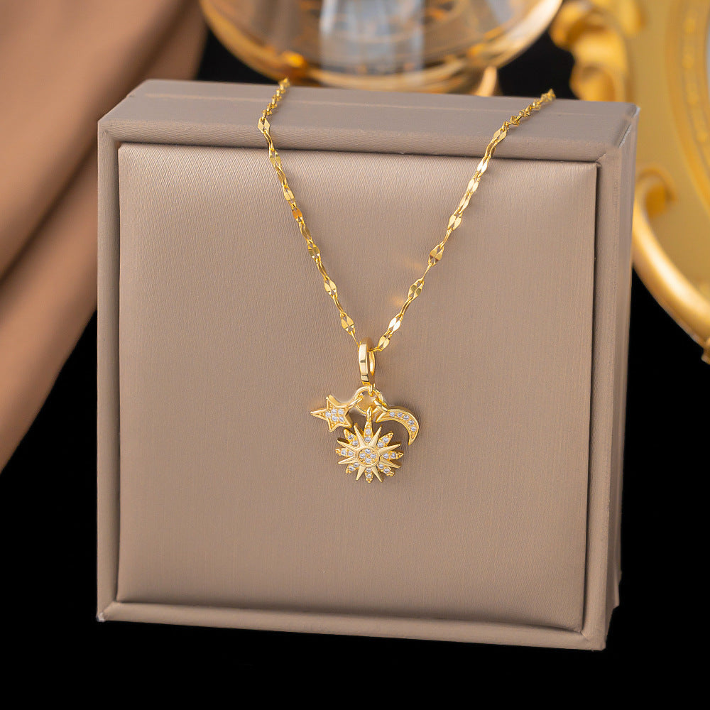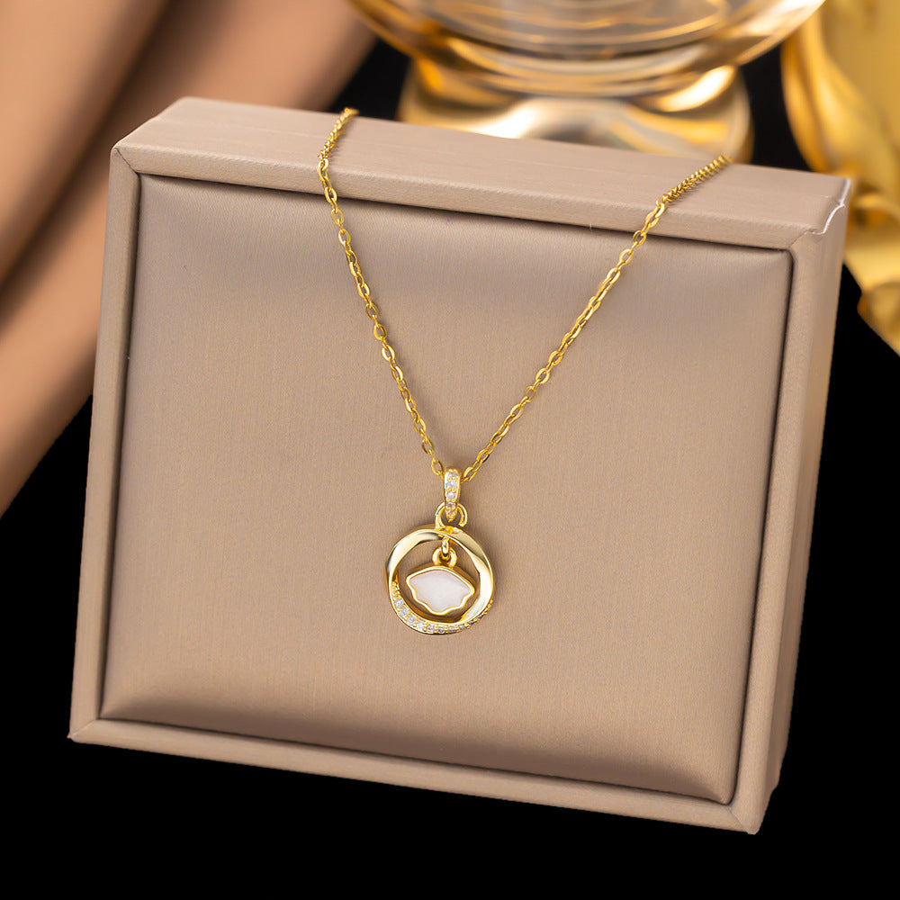 Titanium Steel Circular Mother-of-Pearl Pendant Necklace