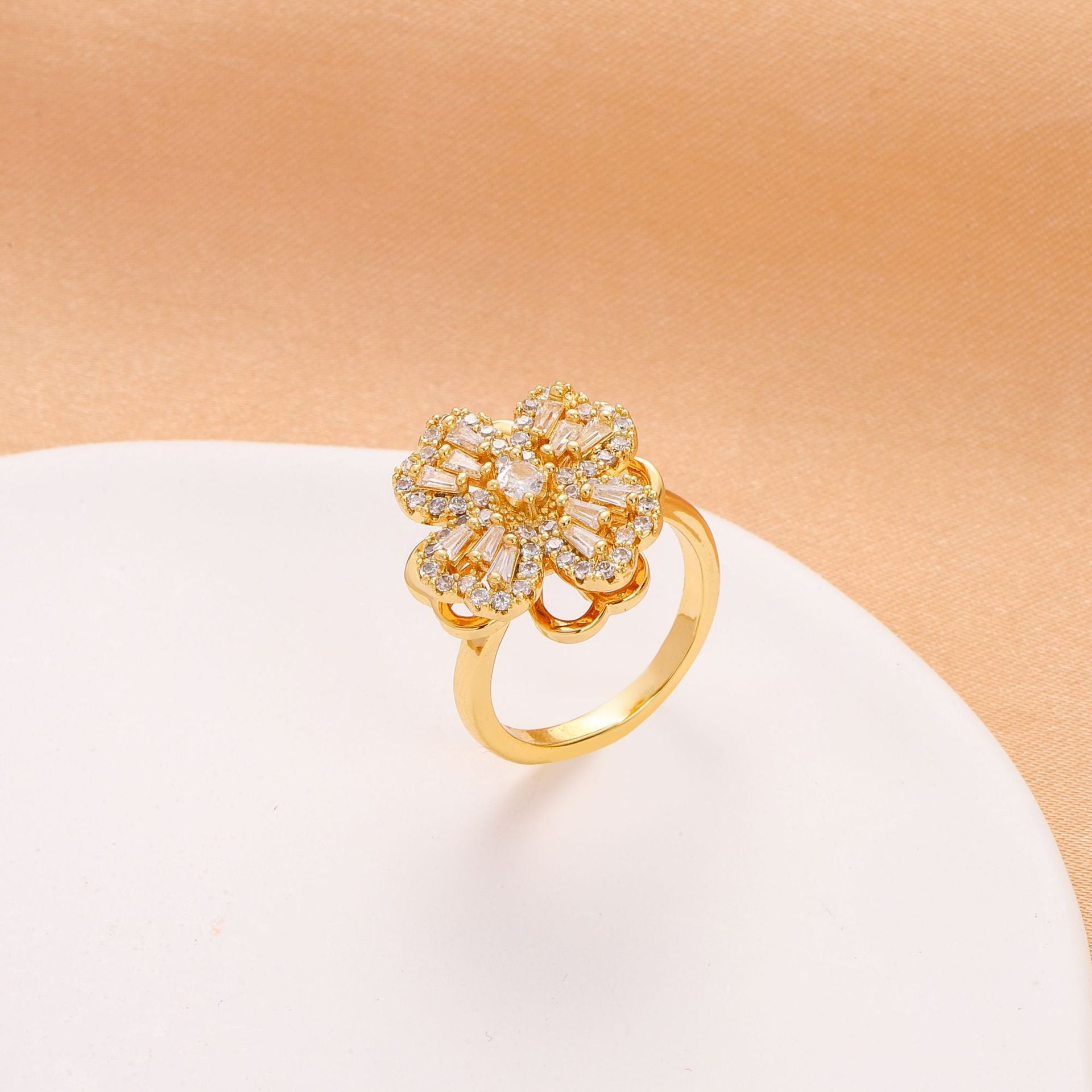 Gold-Plated Korean Zircon-Encrusted Flower Open Ring