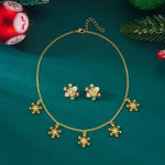 Add a festive sparkle to your look with this Gold Multi-Snowflake Gem Jewelry Set. Featuring multiple snowflake pendants with colorful gems in a gold-plated design, it includes a necklace and earrings for a coordinated holiday style. Whether you’re attending a Christmas party, a festive family gathering, or pairing it with a cozy knit for daily wear, this set effortlessly blends holiday charm and elegance, making it a perfect choice for festive jewelry lovers.