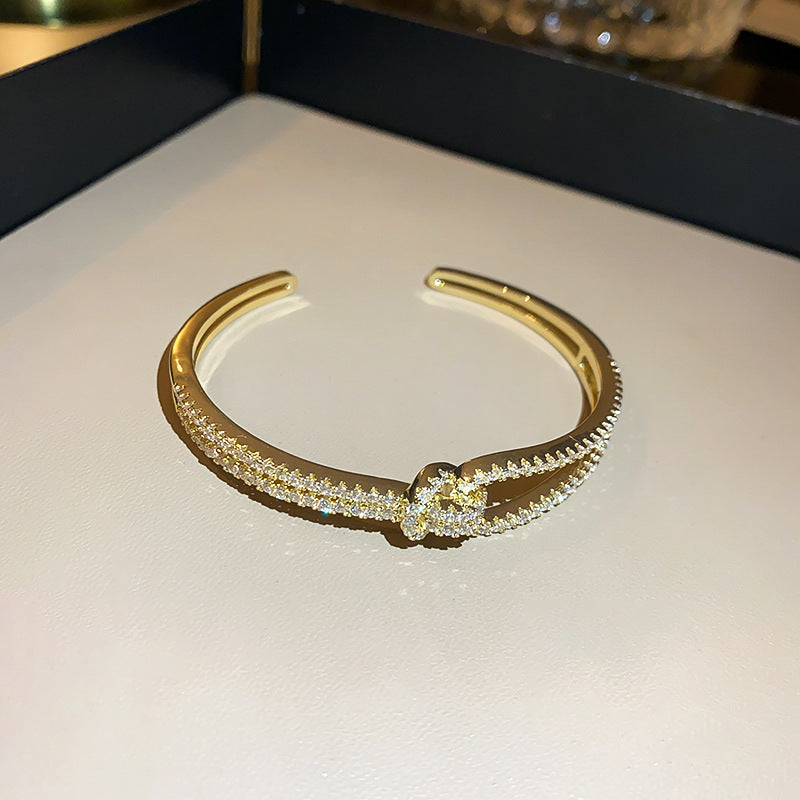 Gold-Plated Zircon Titanium Steel Double-Layer Knot Accent Women’s Cuff Bangle
