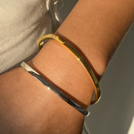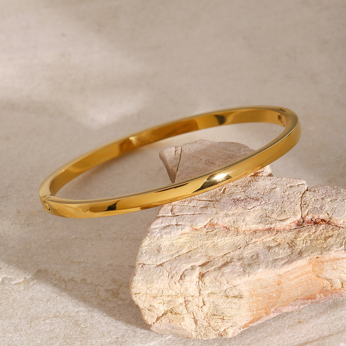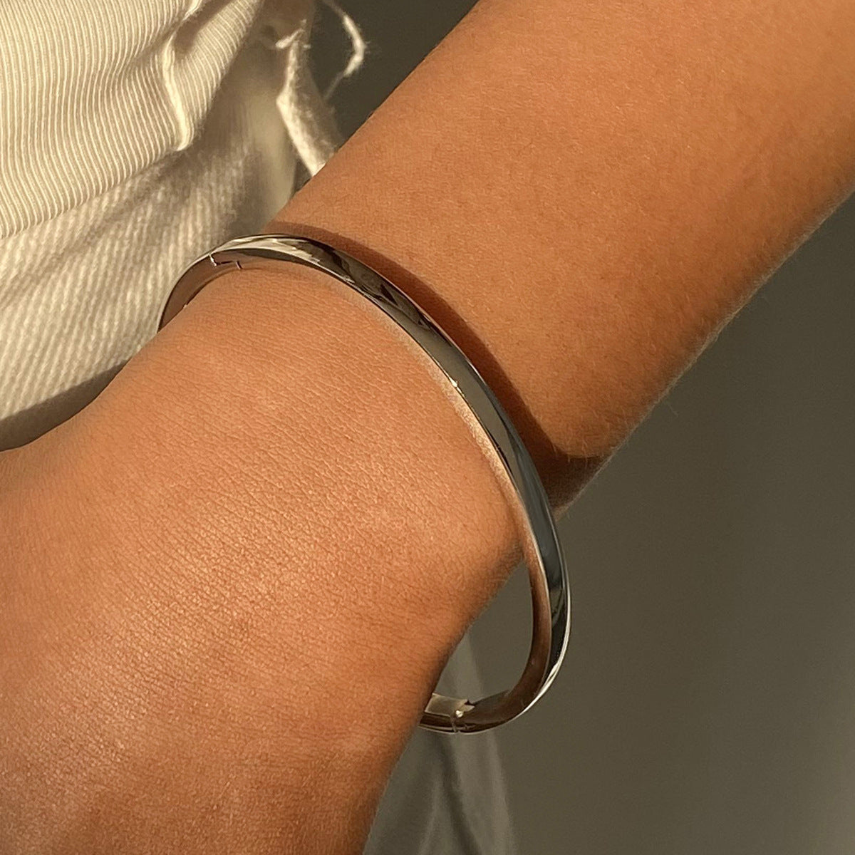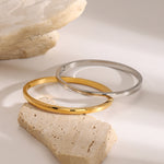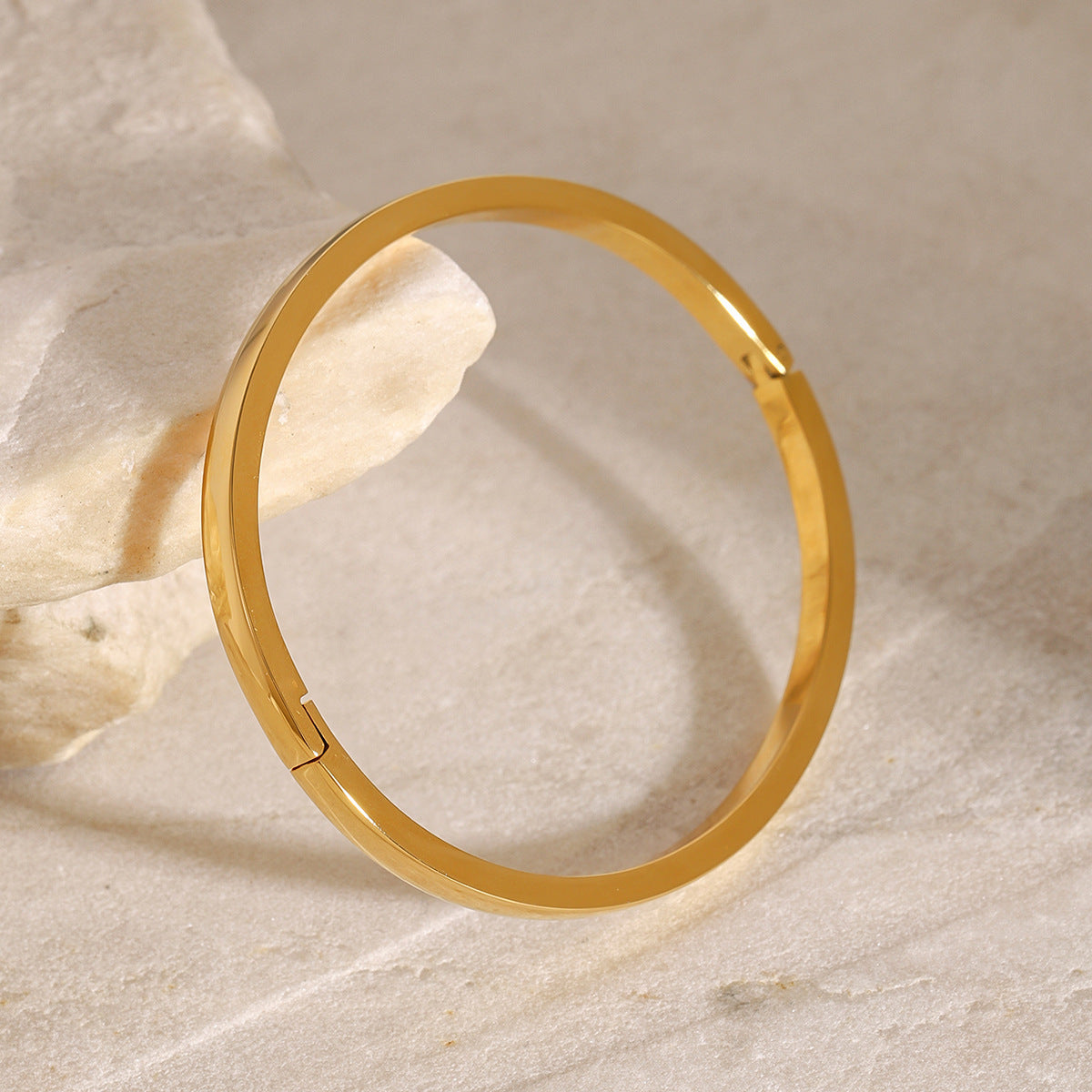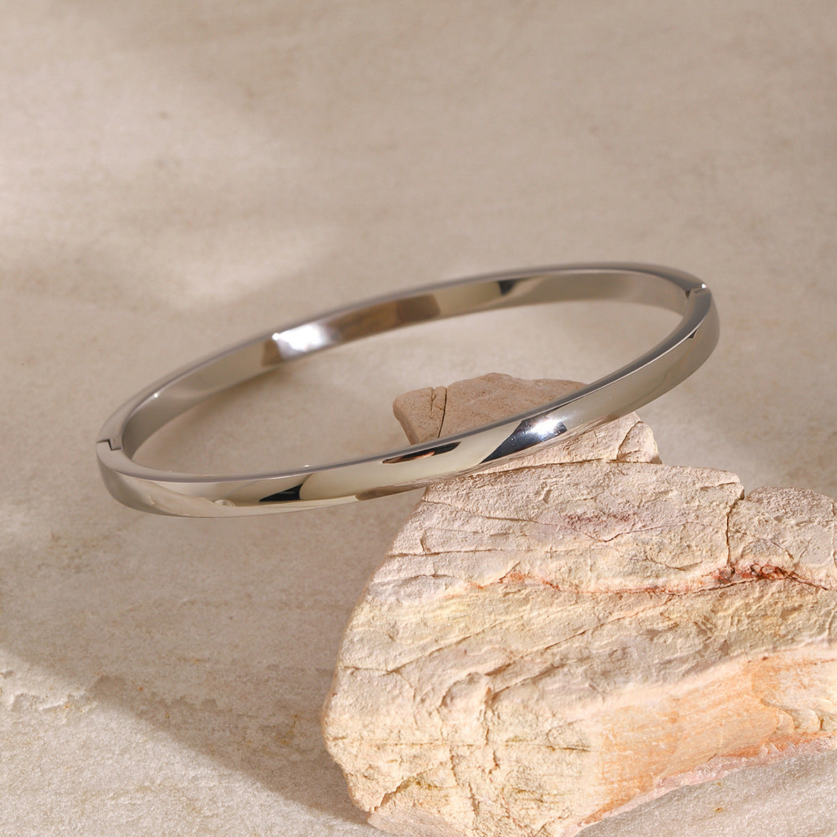 This Polished Stainless Steel Clasp Bangle, available in gold and silver, features a sleek, mirror - like finish and a secure clasp design. Crafted from durable stainless steel, it pairs wonderfully with a silk blouse at a business meeting, a denim jacket during a city walk, or a little black dress for a dinner date. Effortlessly elevate any outfit with this timeless, versatile accessory.