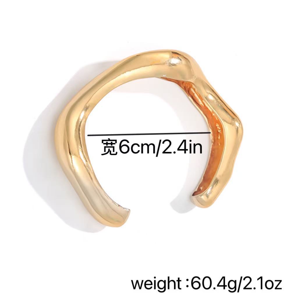 This Retro Irregular Lava - Like Metal Cuff Bangle, offered in gold and silver, boasts a liquid - folded, irregular lava design that exudes retro sophistication. It pairs beautifully with a velvet jumpsuit at an art show, a polka - dot dress at a vintage party, or a knitted cardigan for a casual coffee run, effortlessly infusing any outfit with unique style.
