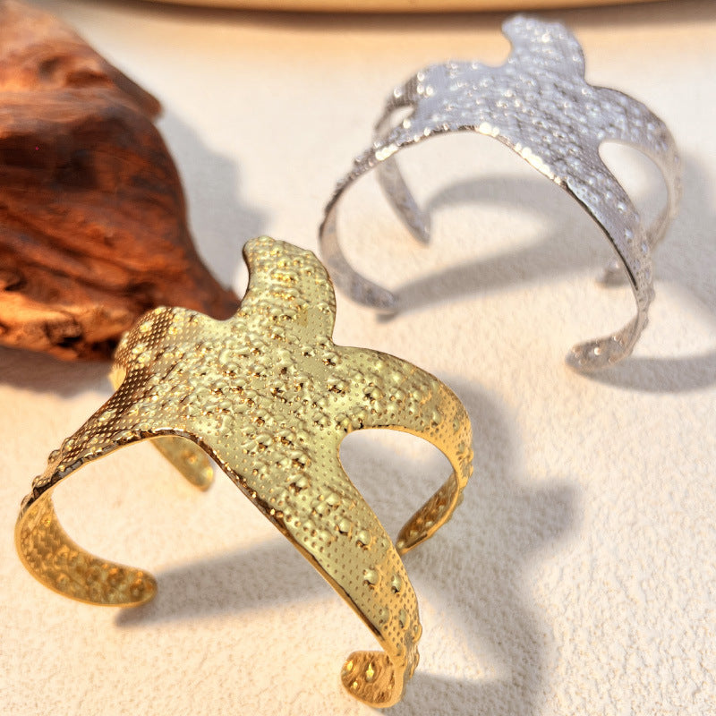 Starfish Stainless Steel Open Cuff Bracelet
