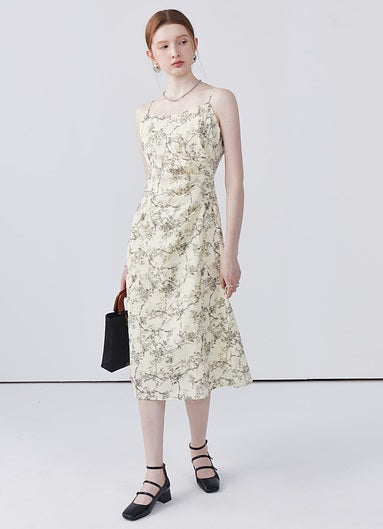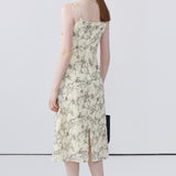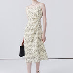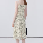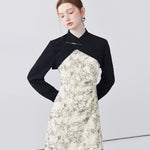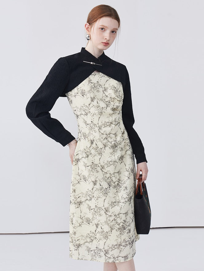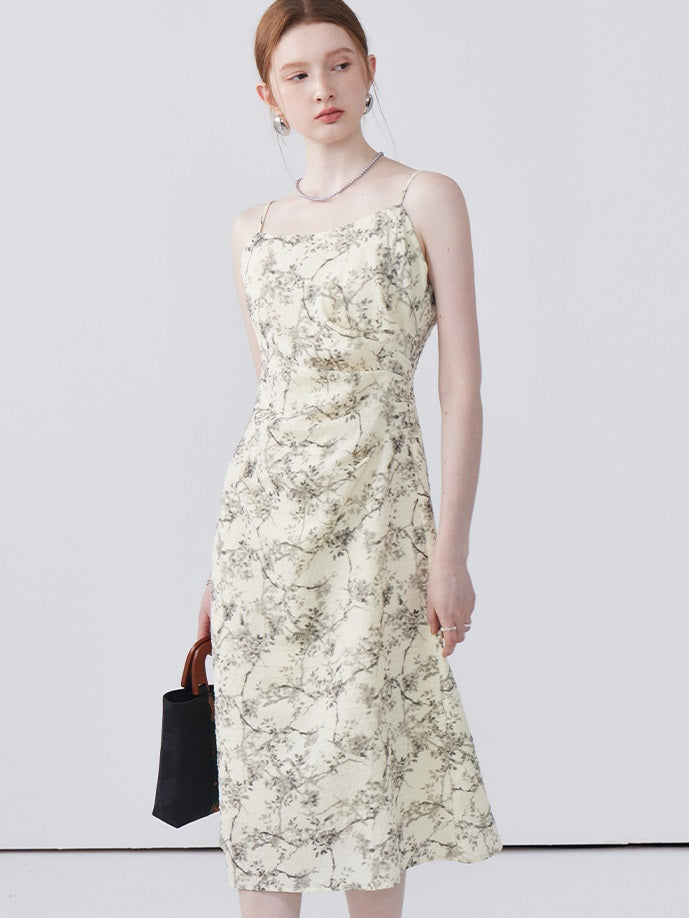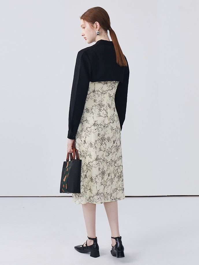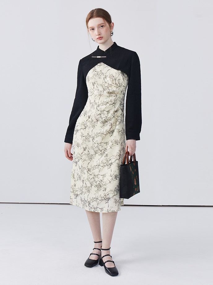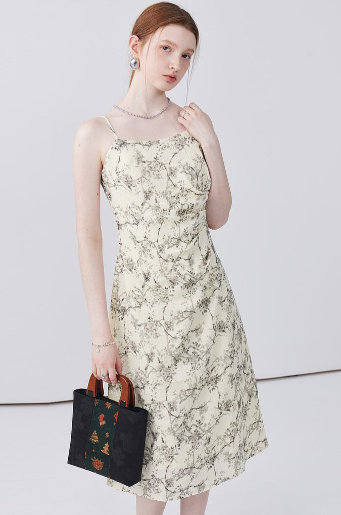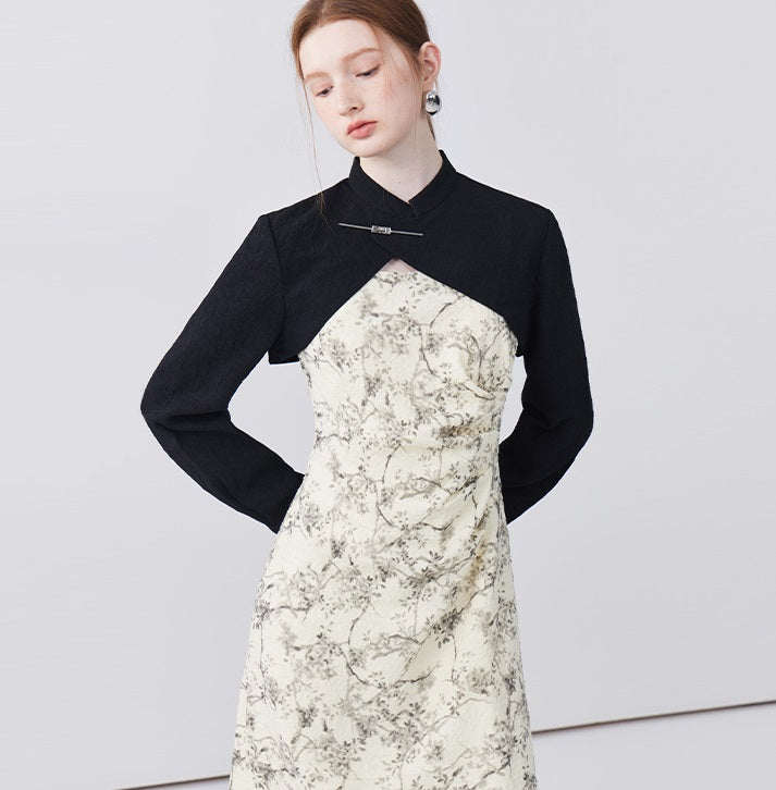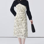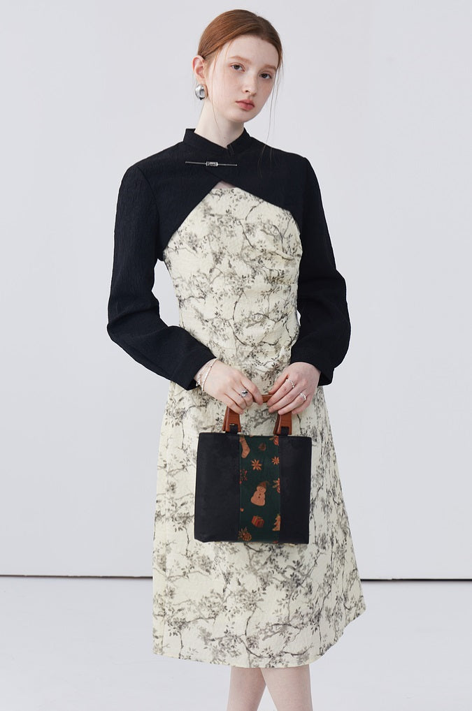 This dress features a unique button design that adds a distinctive touch, while the multi-layered pleating enhances its elegance, creating a graceful and sophisticated look. Ideal for those who appreciate detailed craftsmanship and refined style.