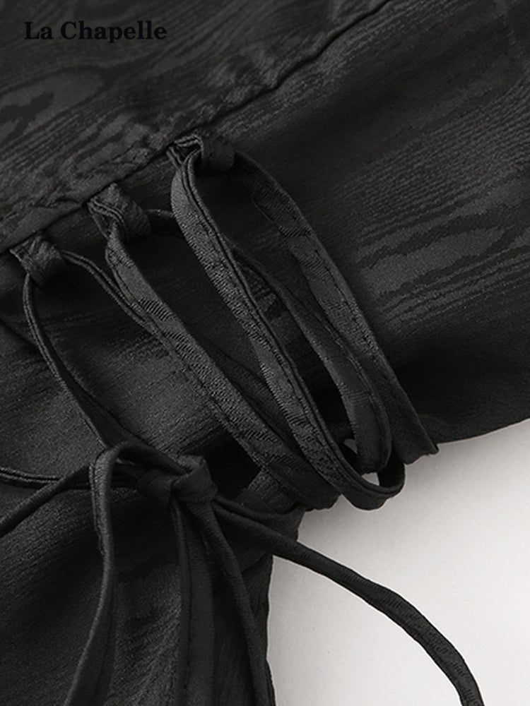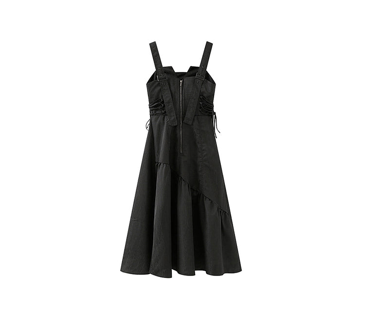 This dress features a back zipper design for easy wearing and removal, while the lace-up detail allows for an adjustable fit. The same color lining complements the overall design, ensuring a seamless and stylish look.