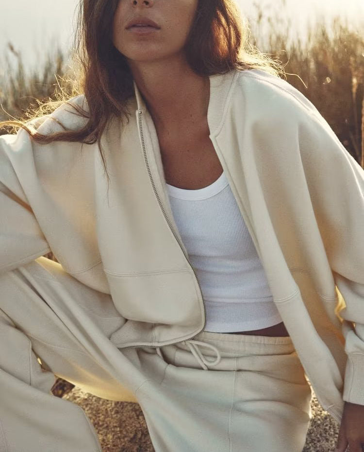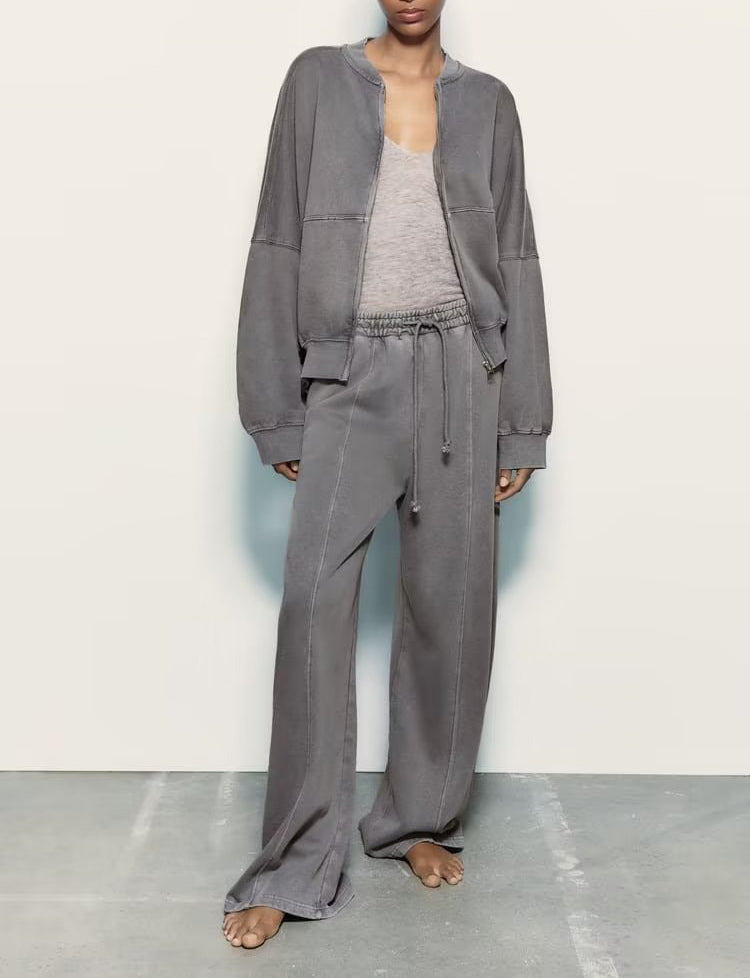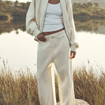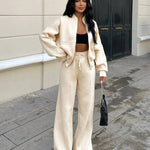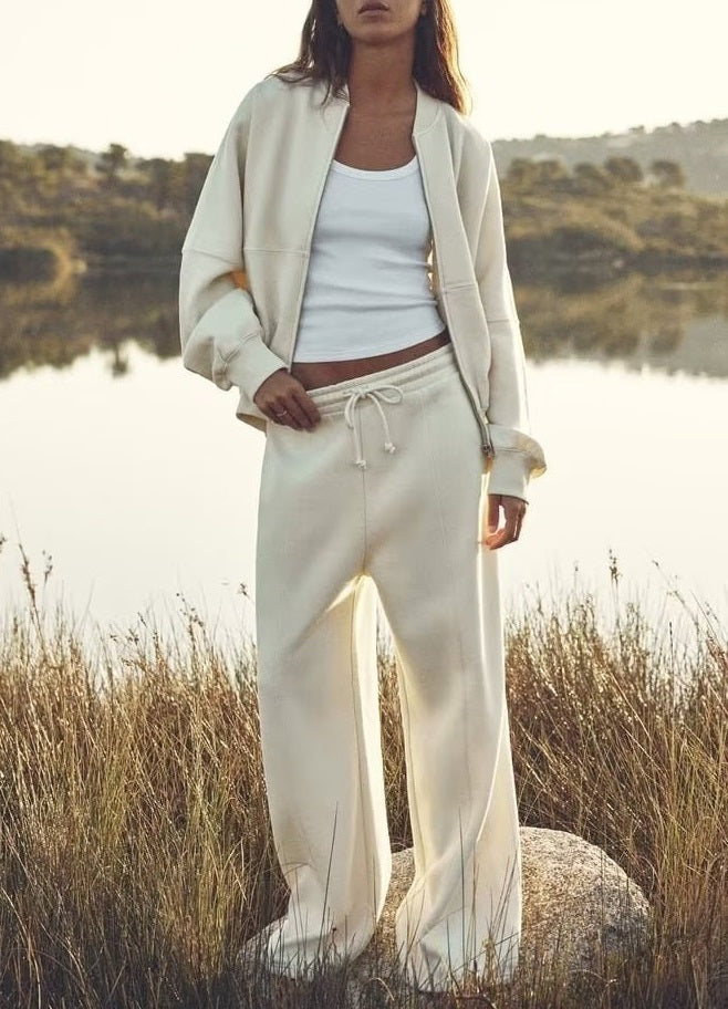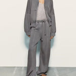 This relaxed two-piece set is designed for effortless style and comfort. Featuring a zip-up hoodie with a minimalistic design and a pair of wide-leg drawstring pants, it provides a perfect balance of coziness and versatility. Made from soft, breathable fabric, it is ideal for lounging, running errands, or casual outings. The loose fit ensures ease of movement, while the simple yet modern aesthetic makes it a wardrobe essential. Available in multiple colors, this set is perfect for creating a laid-back yet stylish look.