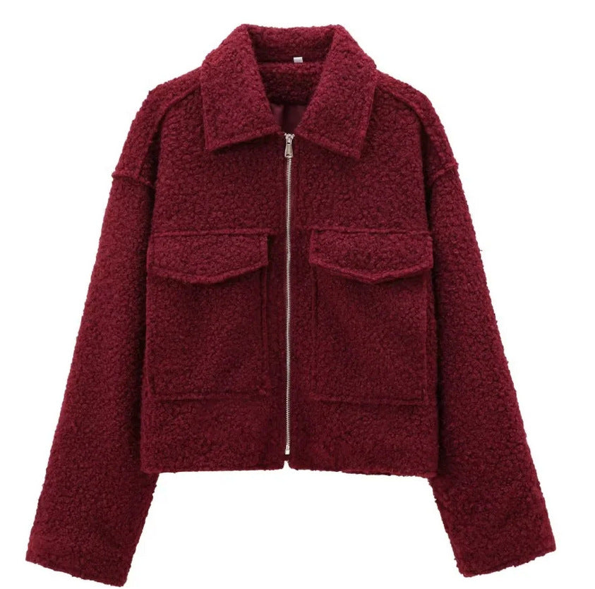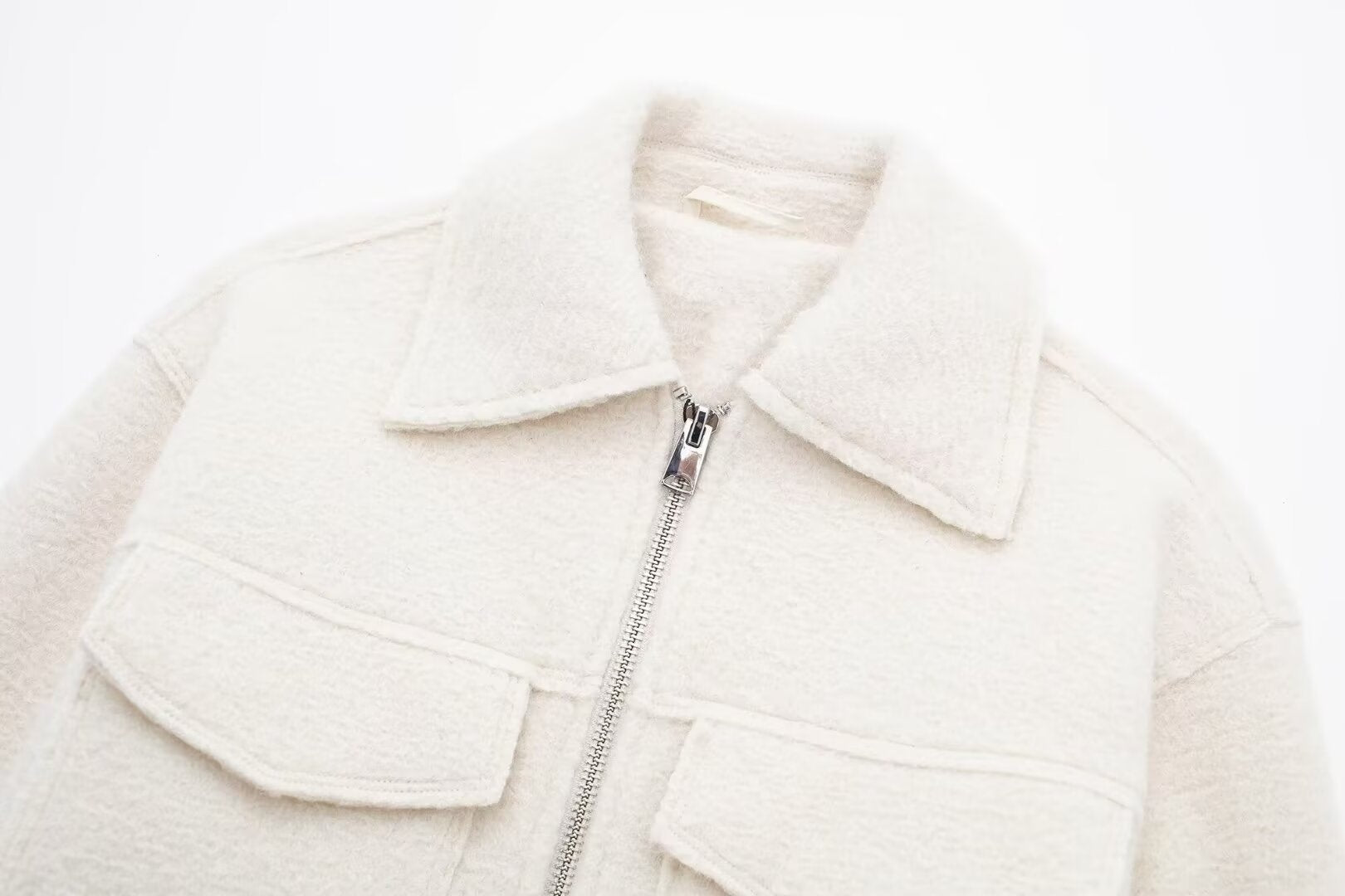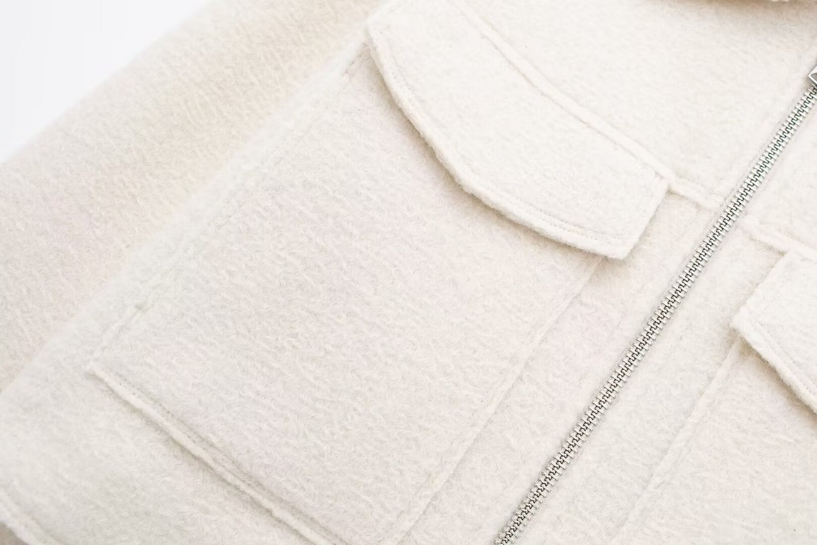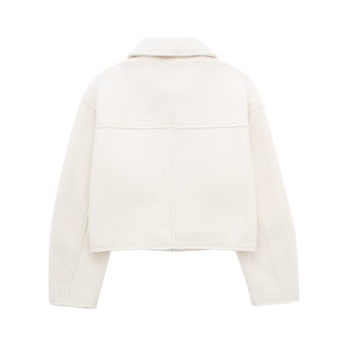 This casual short jacket is designed for effortless style and comfort. Crafted from soft yet durable fabric, it features a modern cropped silhouette with a zip-up front and structured collar for a polished touch. The two large flap pockets add functionality while enhancing the overall design. Its relaxed fit makes it versatile for layering over various outfits, whether paired with jeans for a laid-back look or styled with tailored pants for a refined finish. Available in multiple colors, this jacket is a must-have staple for any wardrobe.