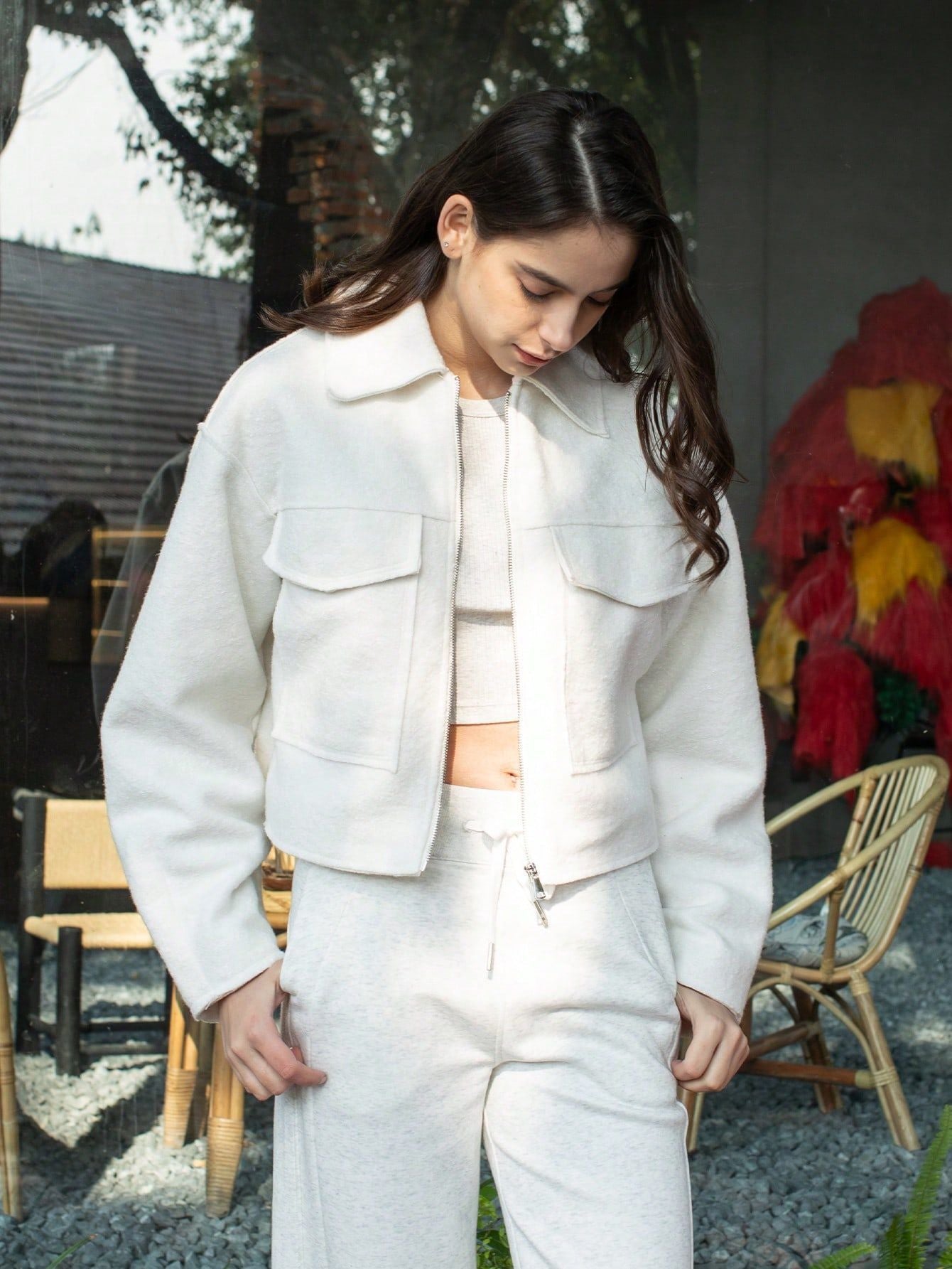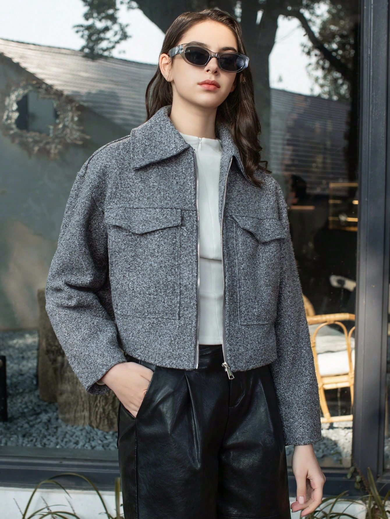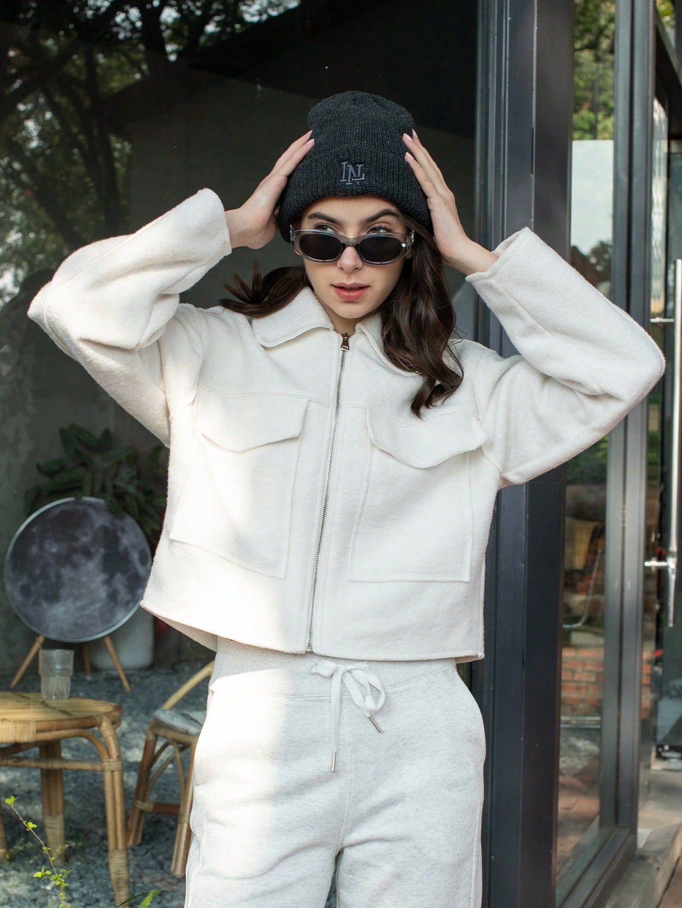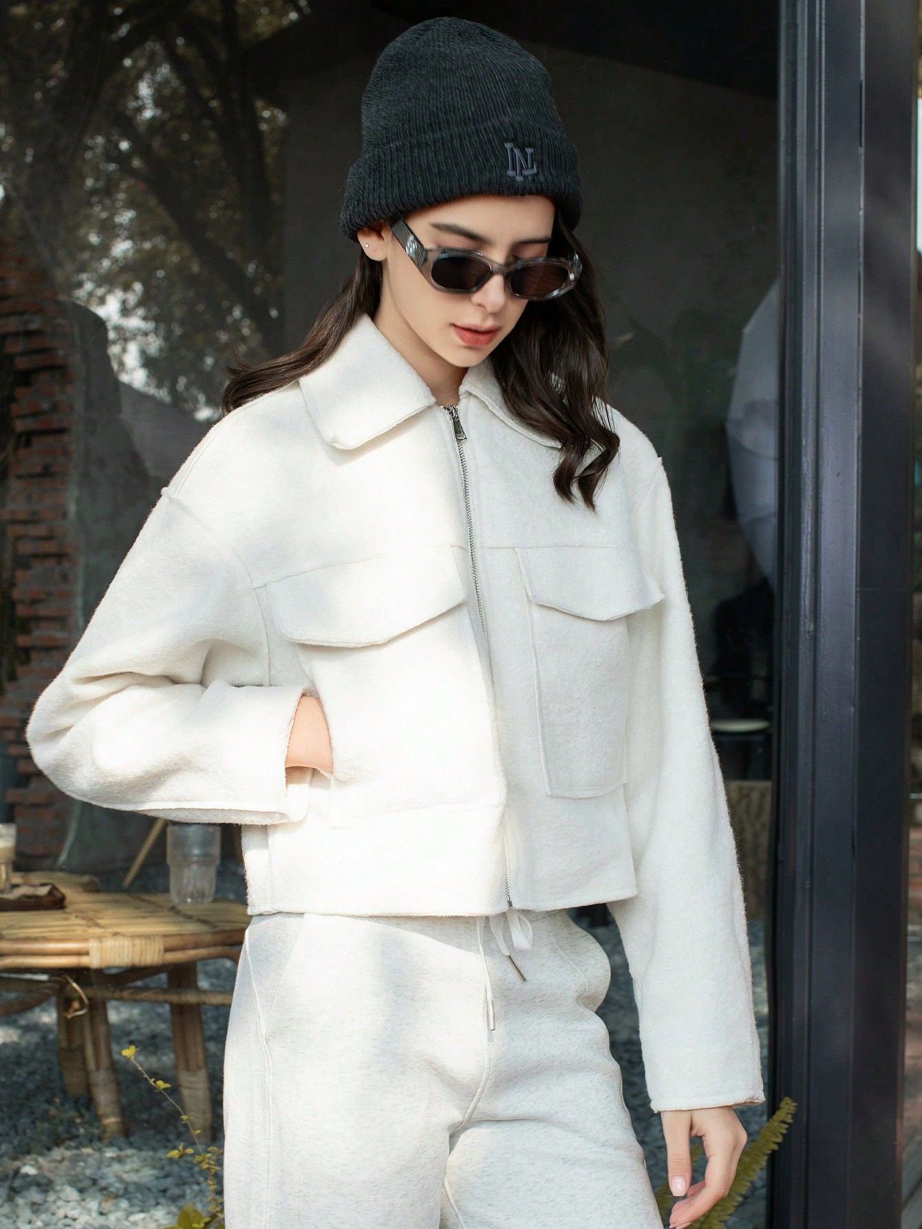 This casual short jacket is designed for effortless style and comfort. Crafted from soft yet durable fabric, it features a modern cropped silhouette with a zip-up front and structured collar for a polished touch. The two large flap pockets add functionality while enhancing the overall design. Its relaxed fit makes it versatile for layering over various outfits, whether paired with jeans for a laid-back look or styled with tailored pants for a refined finish. Available in multiple colors, this jacket is a must-have staple for any wardrobe.