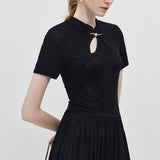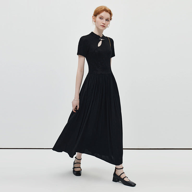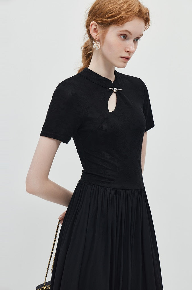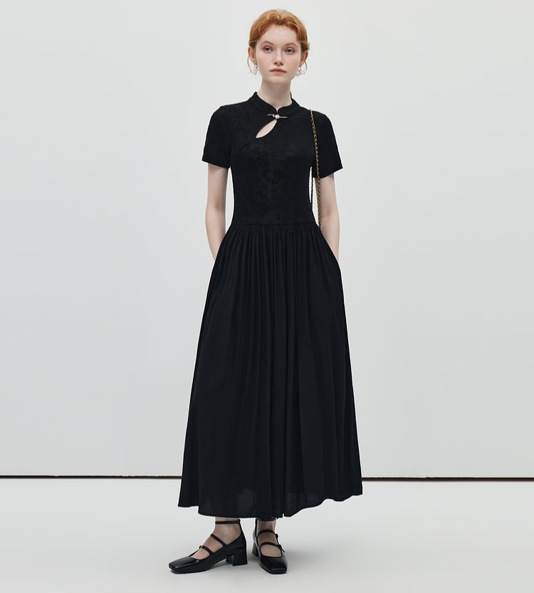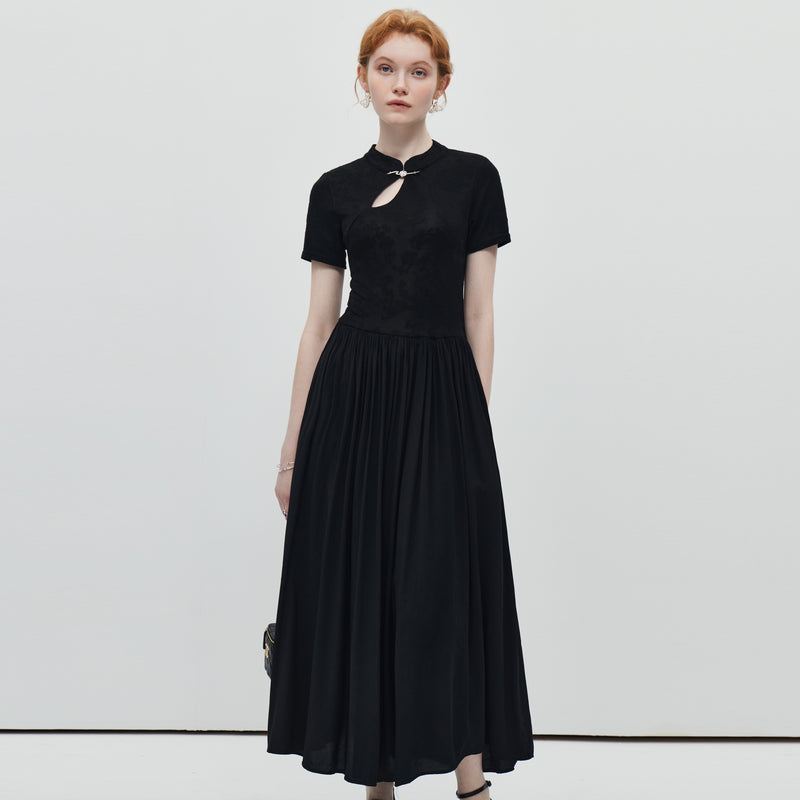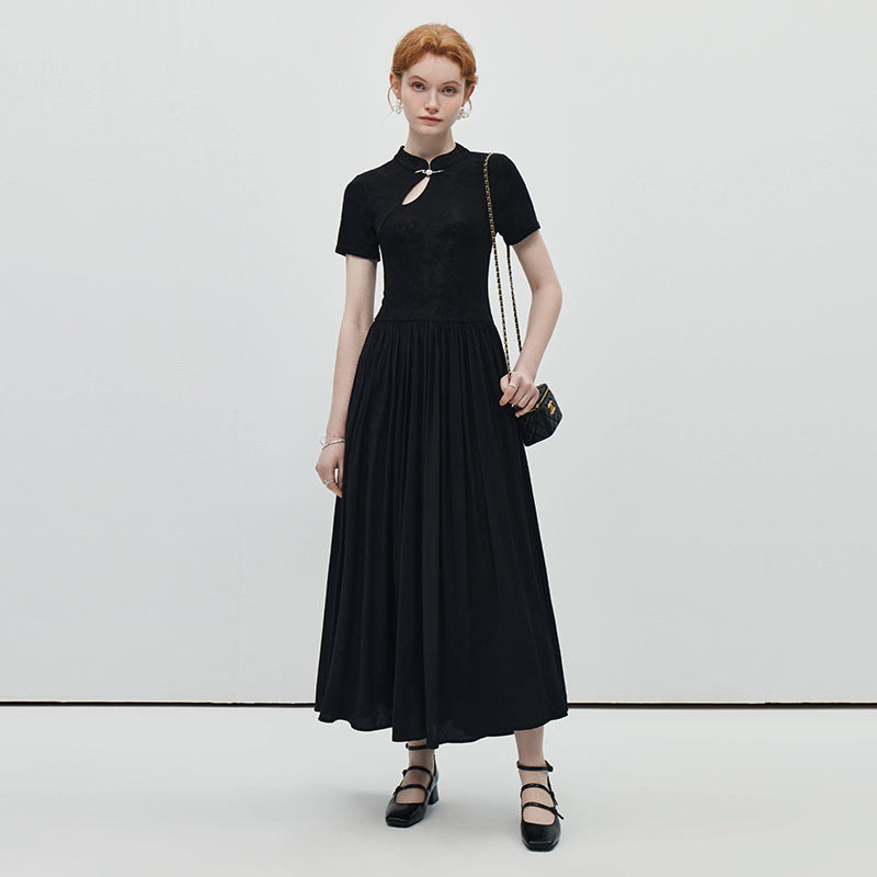 This dress features a hollow design that adds a chic and modern touch, perfect for elevating your style. The splicing design beautifully enhances the body shape, creating a flattering and sophisticated silhouette.