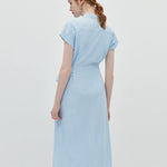 This dress is designed to highlight and enhance posture, adding an elegant touch to your demeanor. The bat cuffs offer rich styling, while the side pockets are both practical and casual, seamlessly integrated into the design for a beautiful, invisible detail.