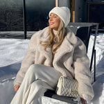 Wrap yourself in unmatched softness with this plush winter essential. The oversized silhouette offers both comfort and effortless style, while the rich texture of the faux shearling ensures warmth even in the coldest temperatures. Featuring a wide notched collar and subtly structured shoulders, this piece brings a refined edge to a cozy classic. Whether you're strolling snowy streets or lounging fireside, it adds a touch of understated luxury to any winter ensemble.