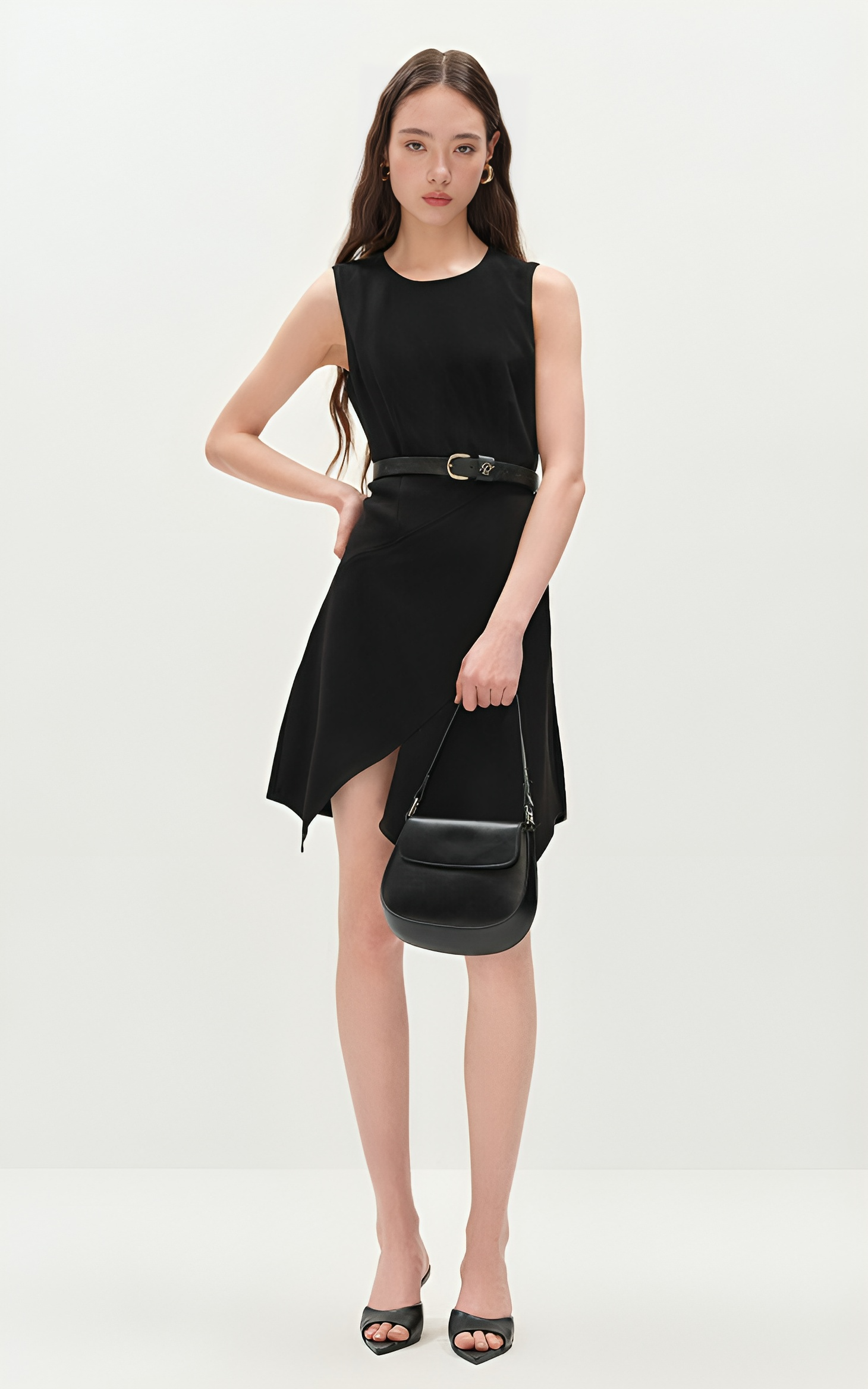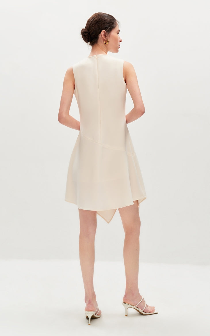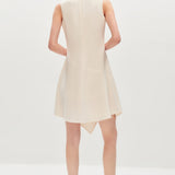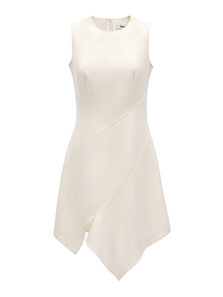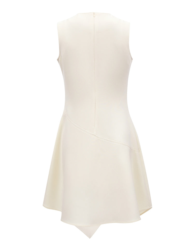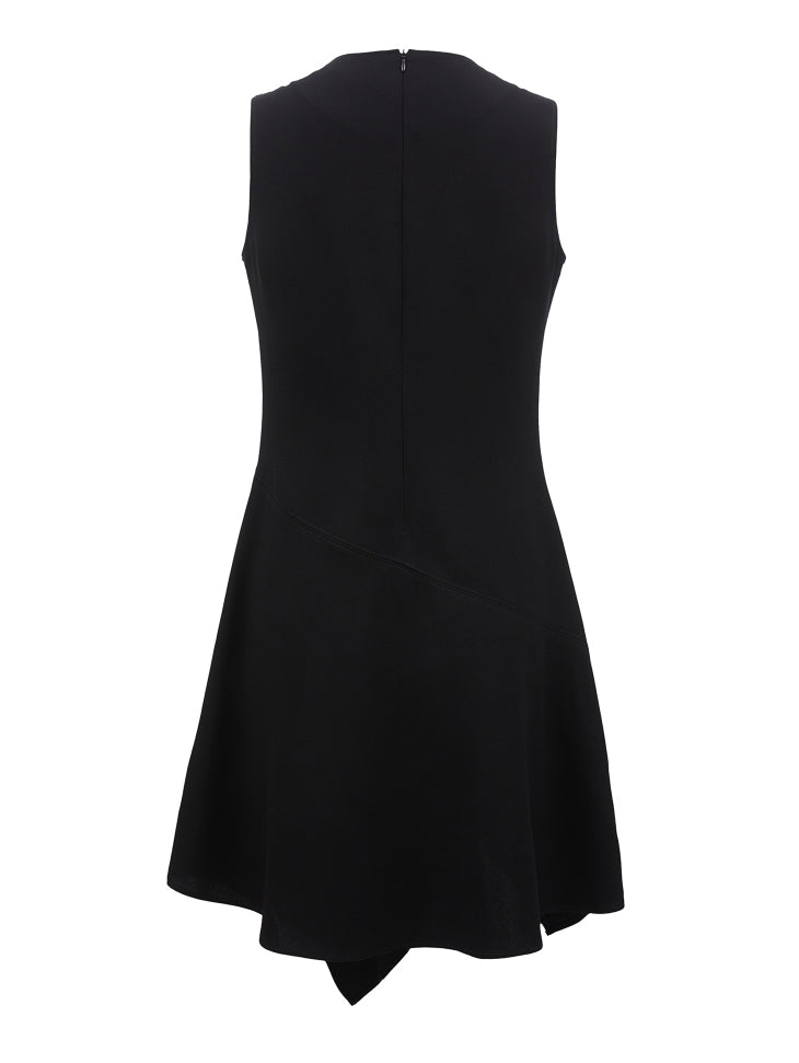 This dress features slimming three-dimensional tailoring that enhances the silhouette beautifully. The irregular tank top design adds a modern edge, complemented by an asymmetrical hem for a dynamic look. The invisible zipper at the back ensures a seamless finish and easy wearability.